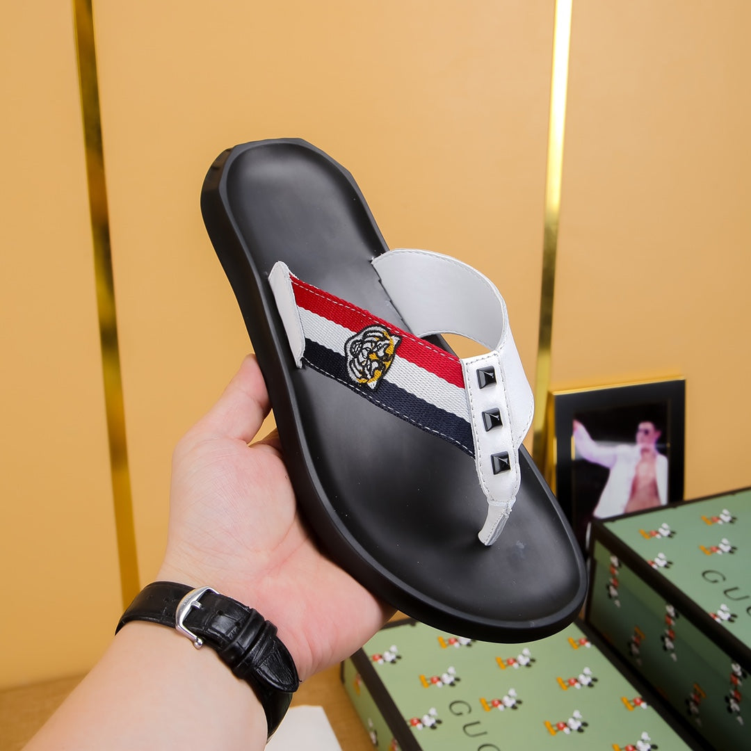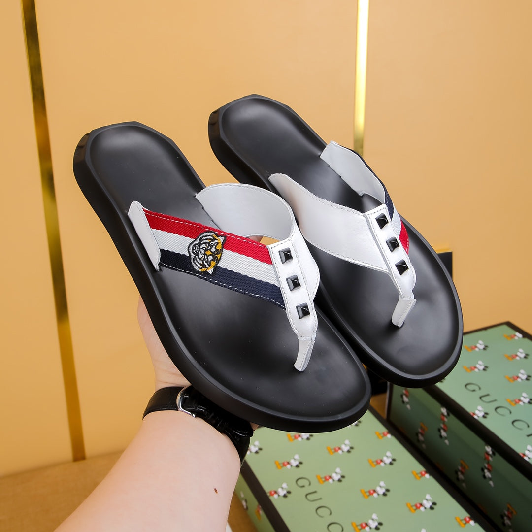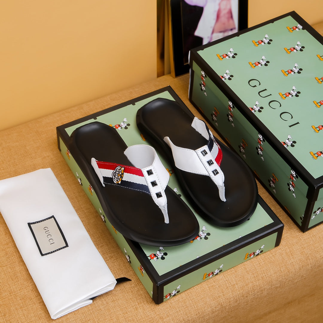 GG Men's Thong Sandals White Cowhide 587227