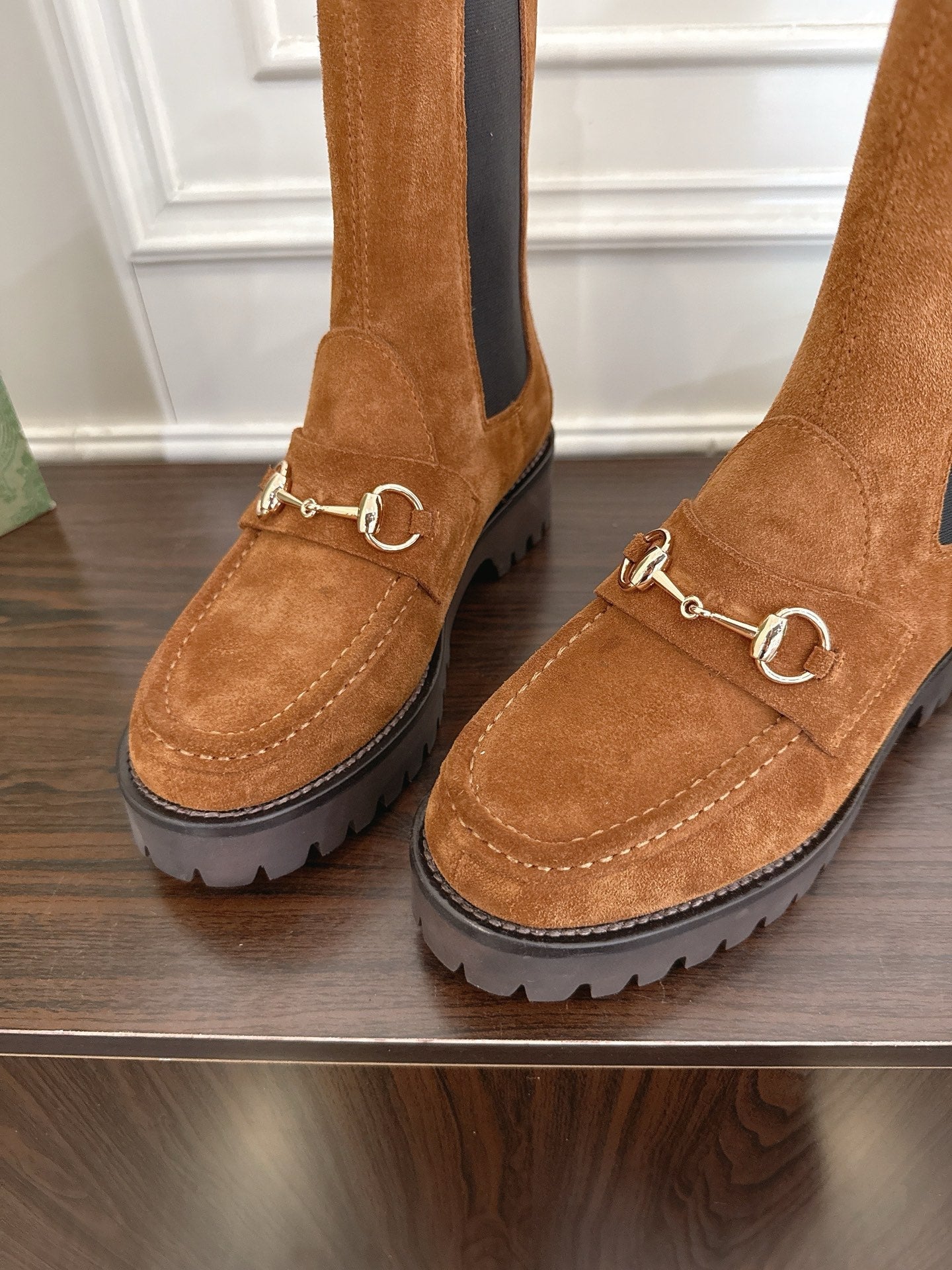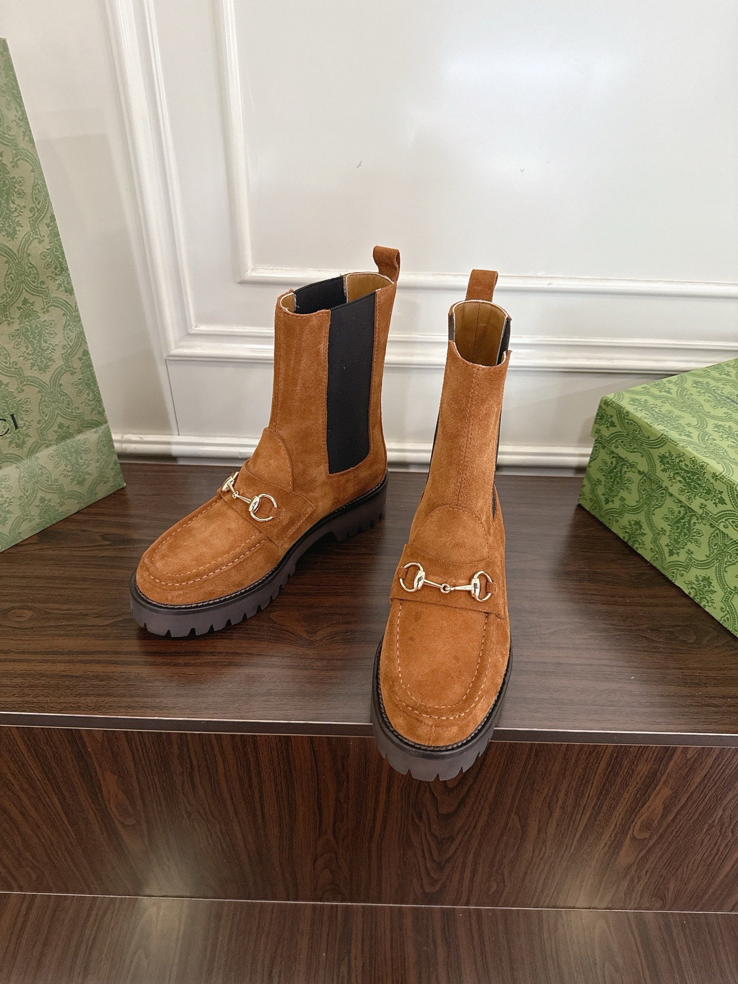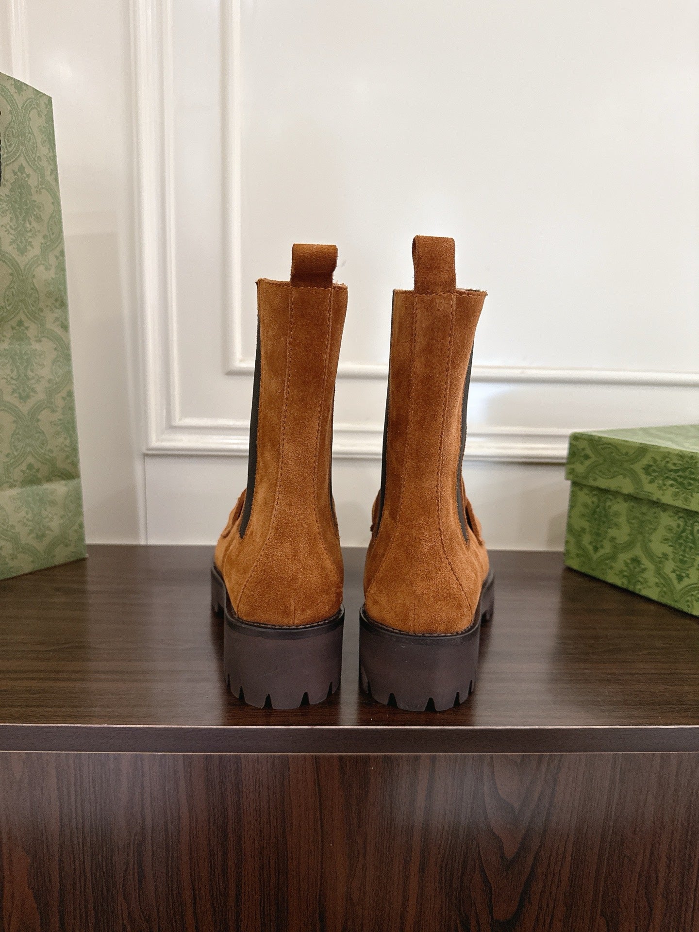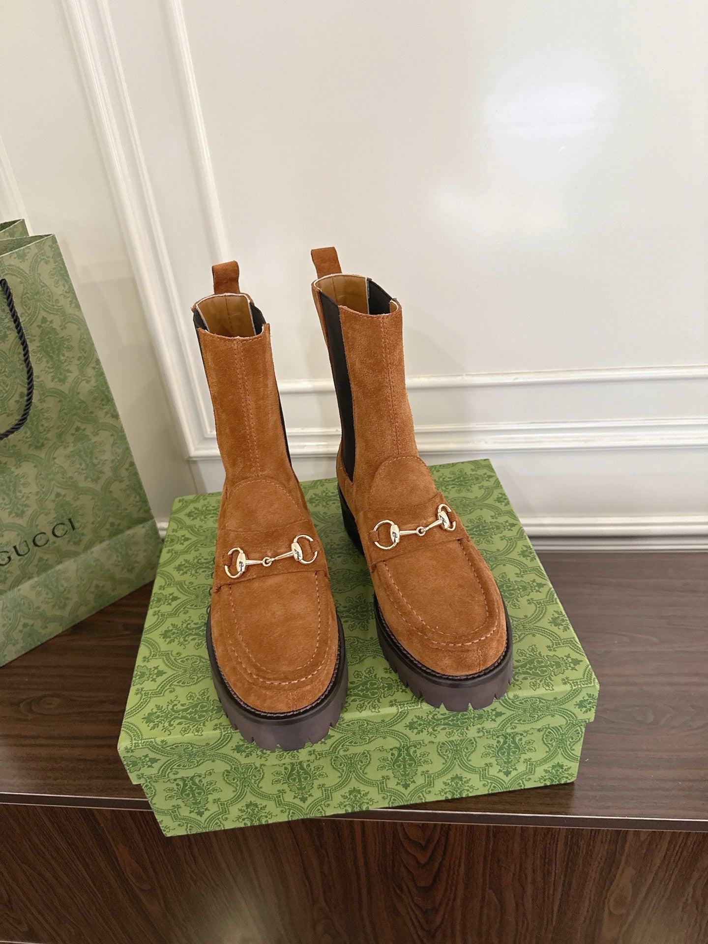 Gucci Horsebit Ankle Boots Brown Black Suede Sheepskin 490529