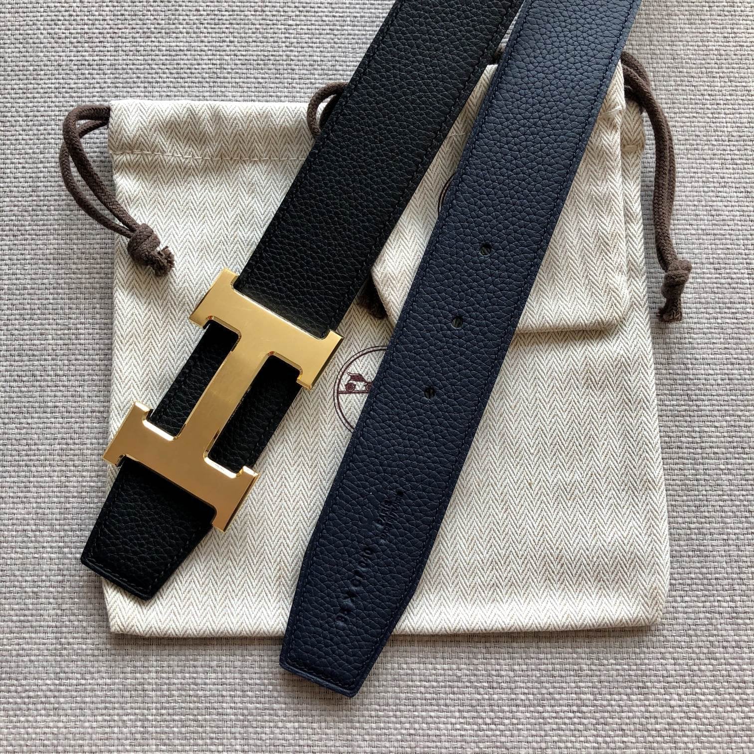 • H Buckle in permabrass plated metal.