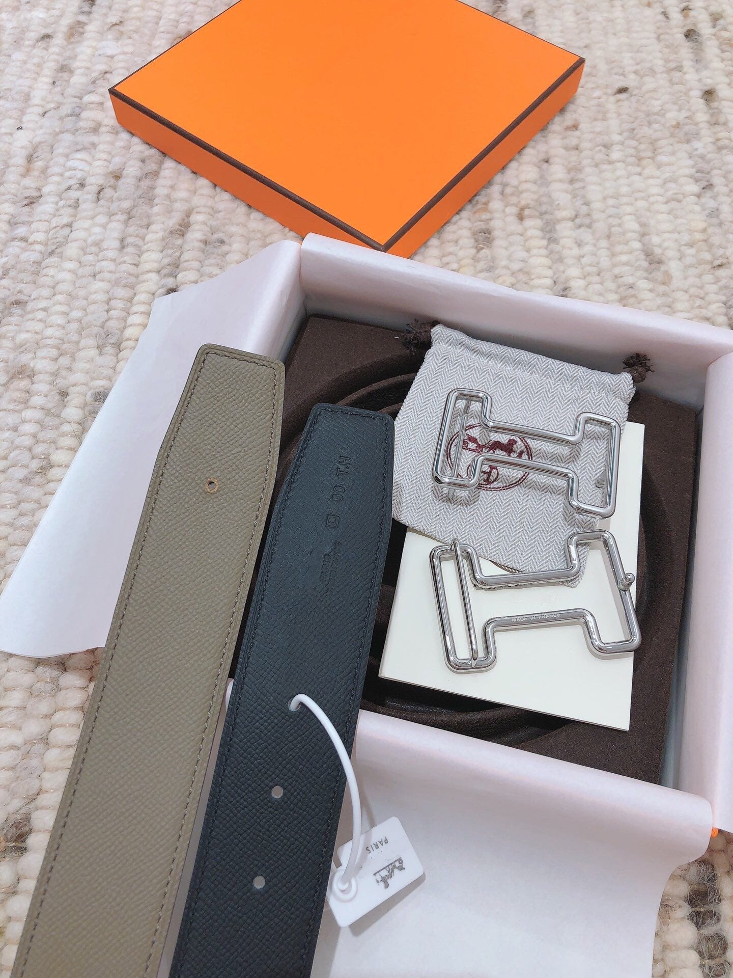 H TONIGHT BELT 38MM GOLD PRUSSIAN BLUE LEATHER