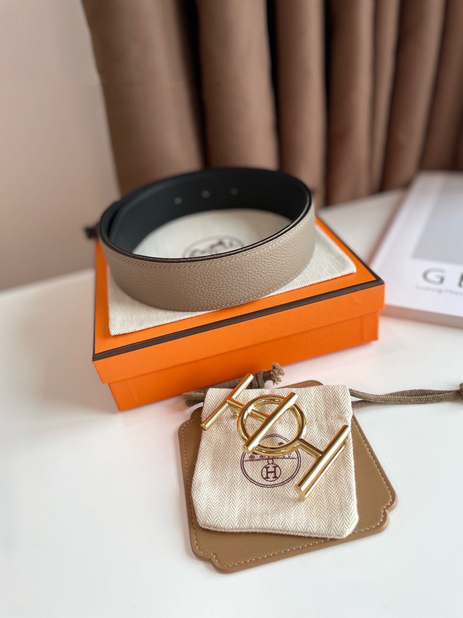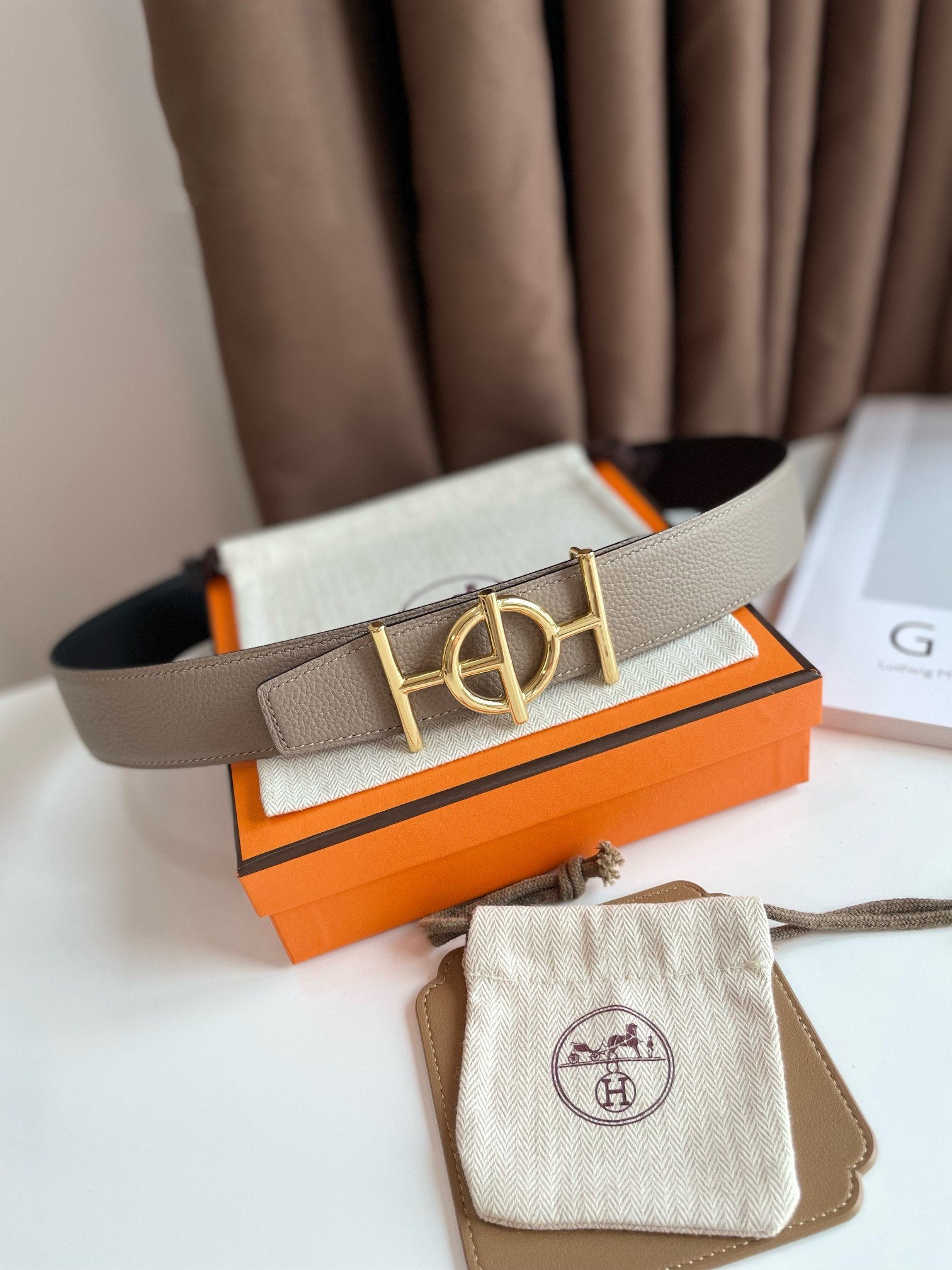 H ULYSSE BELT 38MM GOLD BUCKLE BLACK ETOUPE LEATHER