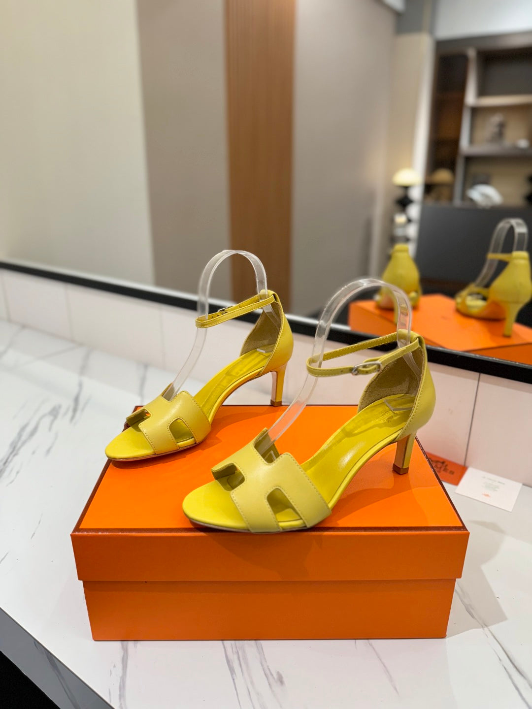 HM Joy 65mm Heeled Sandals Yellow Flat Cowhide 294929