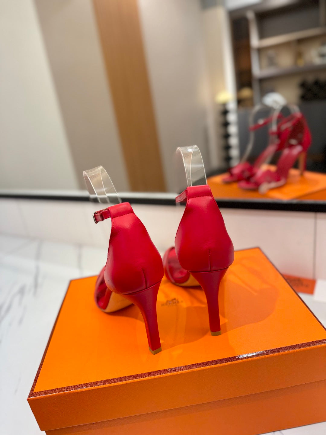 HM Joy 90mm Heeled Sandals Red Flat Cowhide 294922