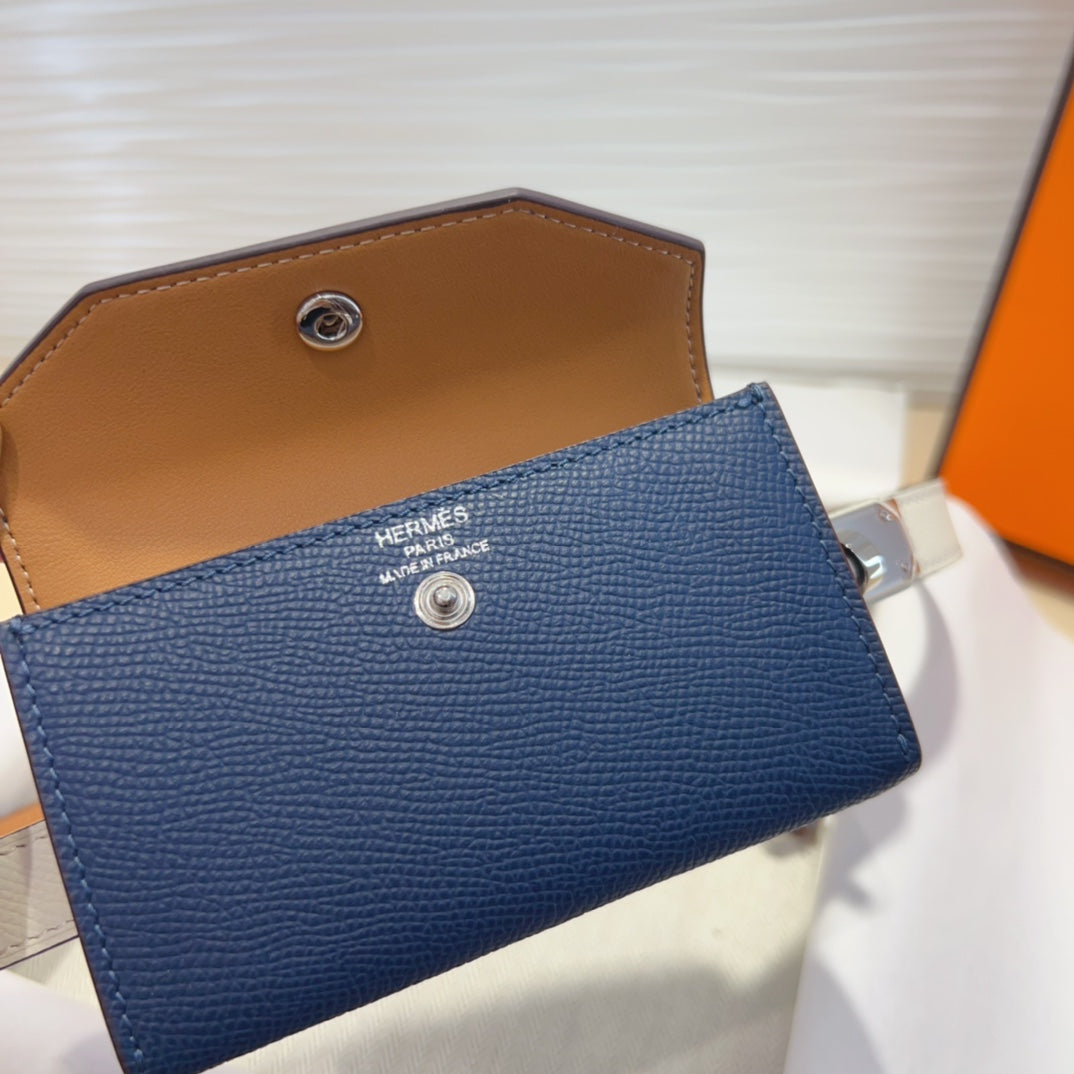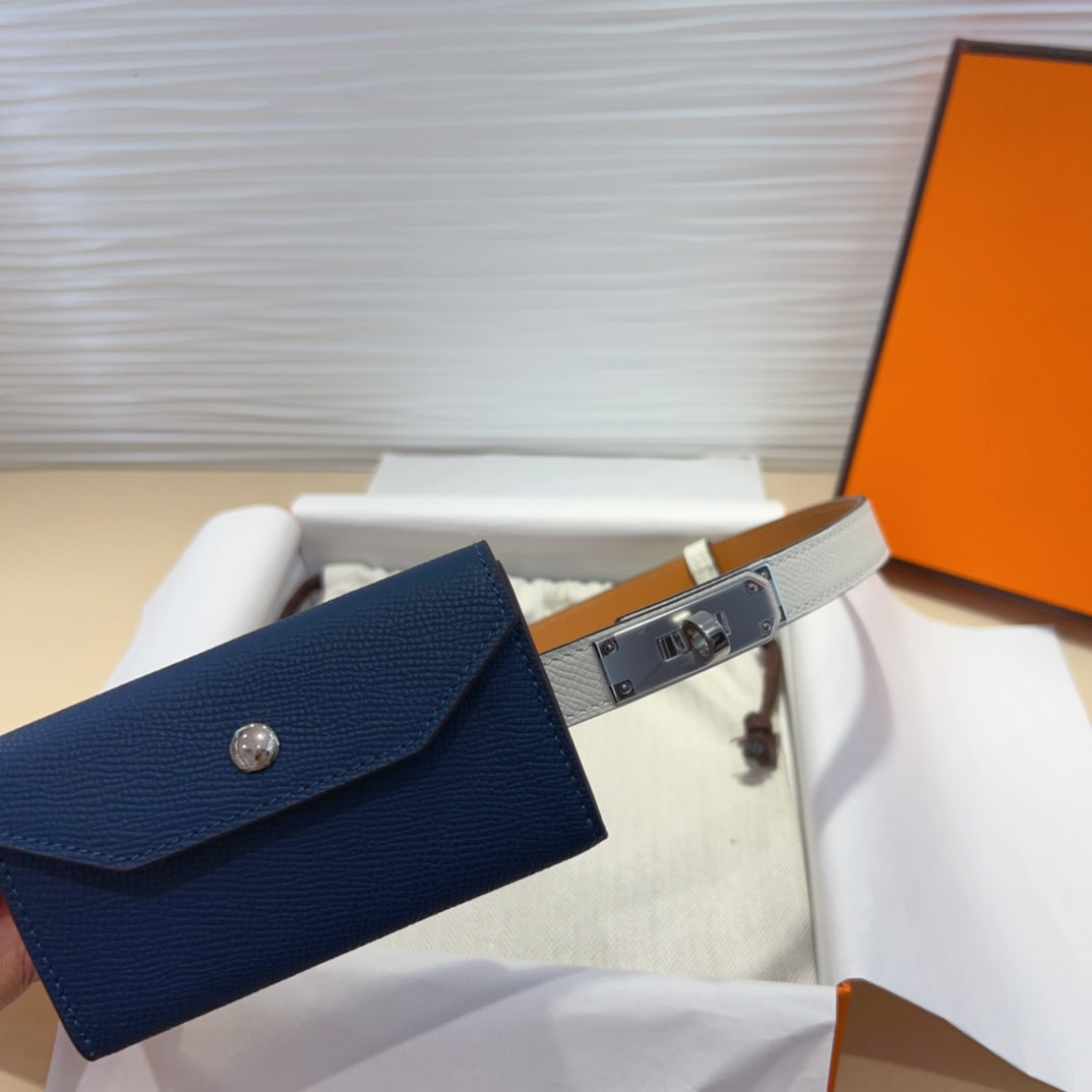 HM KELLY NAVY BLUE POCKET 18MM BELT WHITE LEATHER SILVER HARDWARE