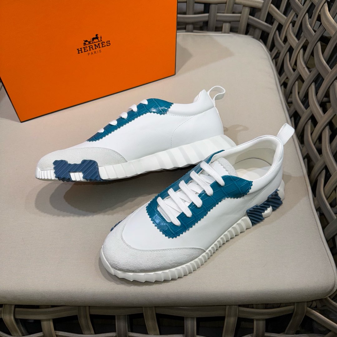 HM Men's Bouncing Sneaker White Blue Calfskin Suede