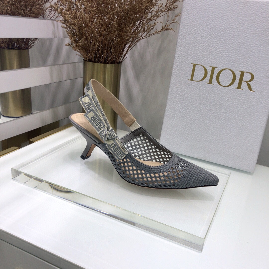 JAdior slingback pumps 65 transparent mesh grey embroidered cotton