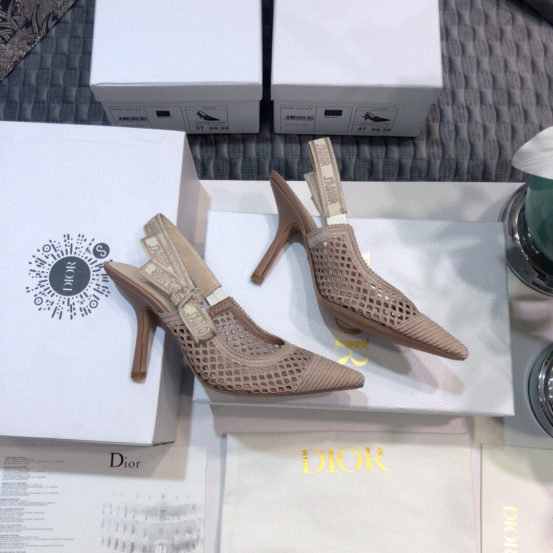 JAdior slingback pumps 95 transparent mesh rose cannelle embroidered cotton