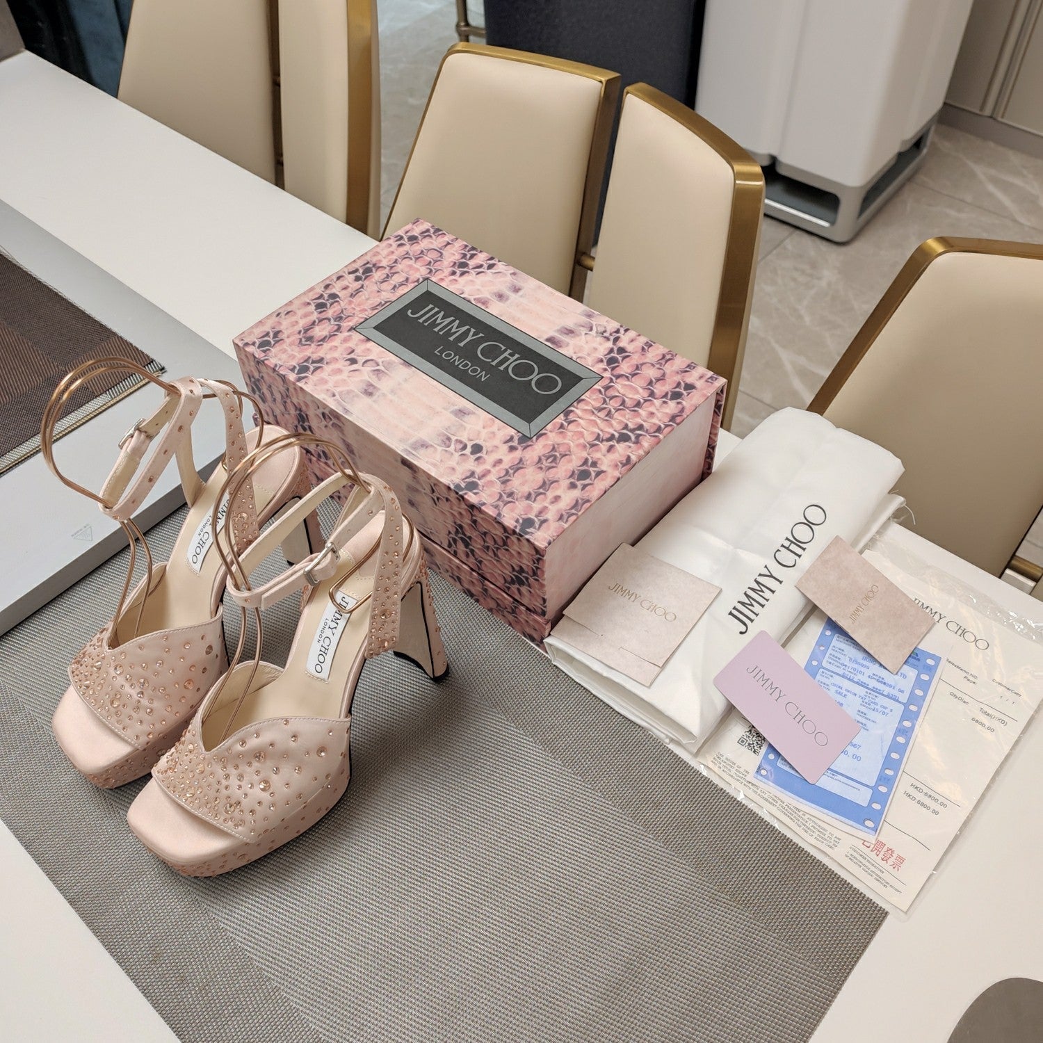 Jimmy 25 Platform Sandal Heels Lady Pink Silk Satin 240012