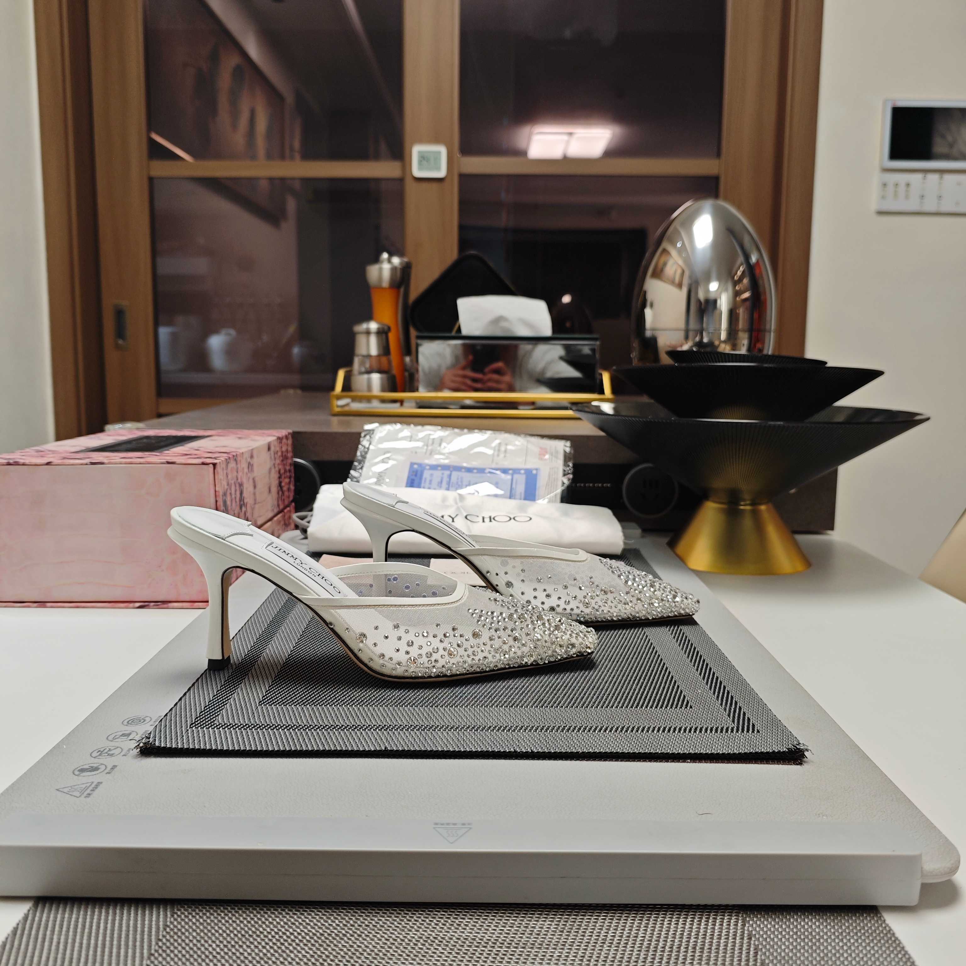 Jimmy 25 Vivi 100 Mule White Mesh Gauze 240052