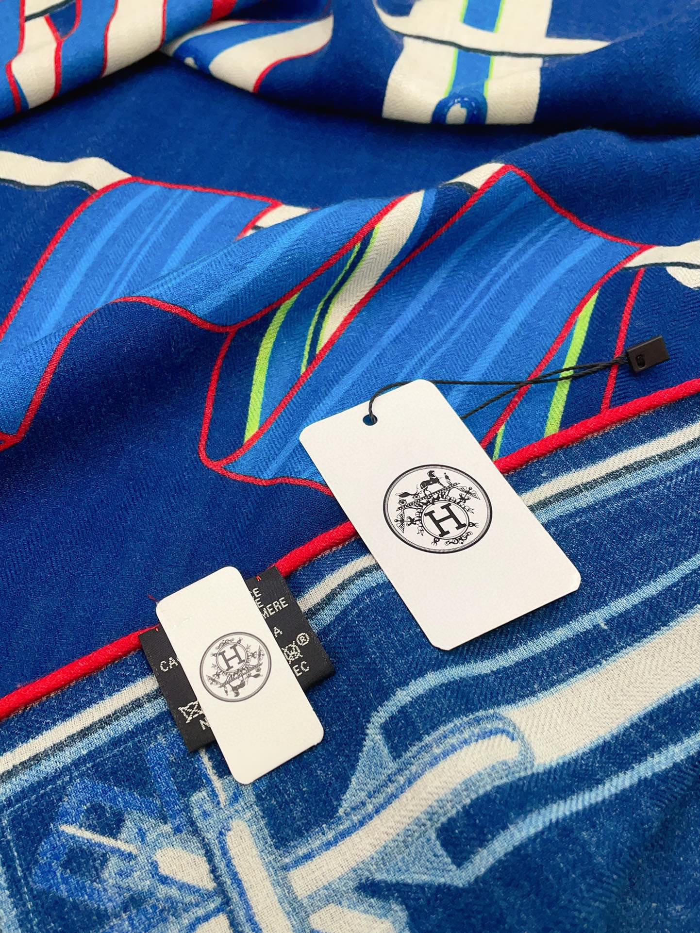 Les Sangles En Finesse Rectangle Scarf 180 CM In Dark Blue Colorful Cashmere And Silk 373657