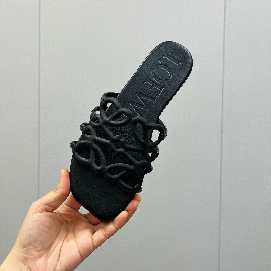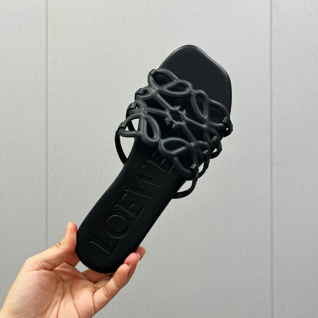 Loewe 25 Petal Anagram Slides Black Cowhide