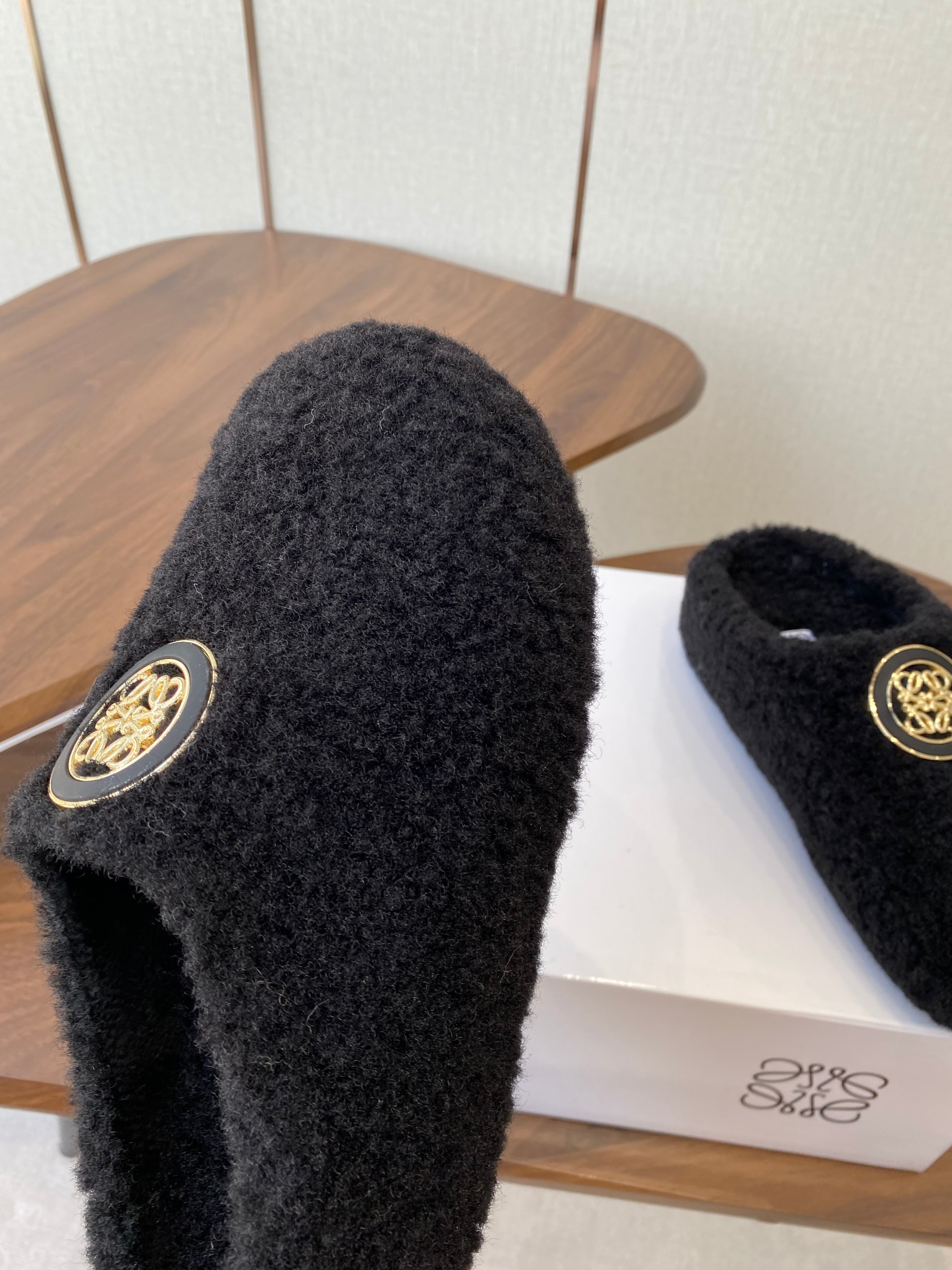 Loewe Birkenstock slippers black wool 477790