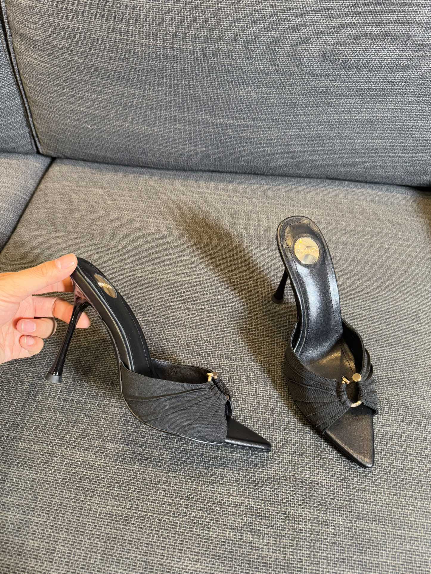 LOLA HIGH MULES IN BLACK SMOOTH LAMBSKIN AND DRAPED JERSEY