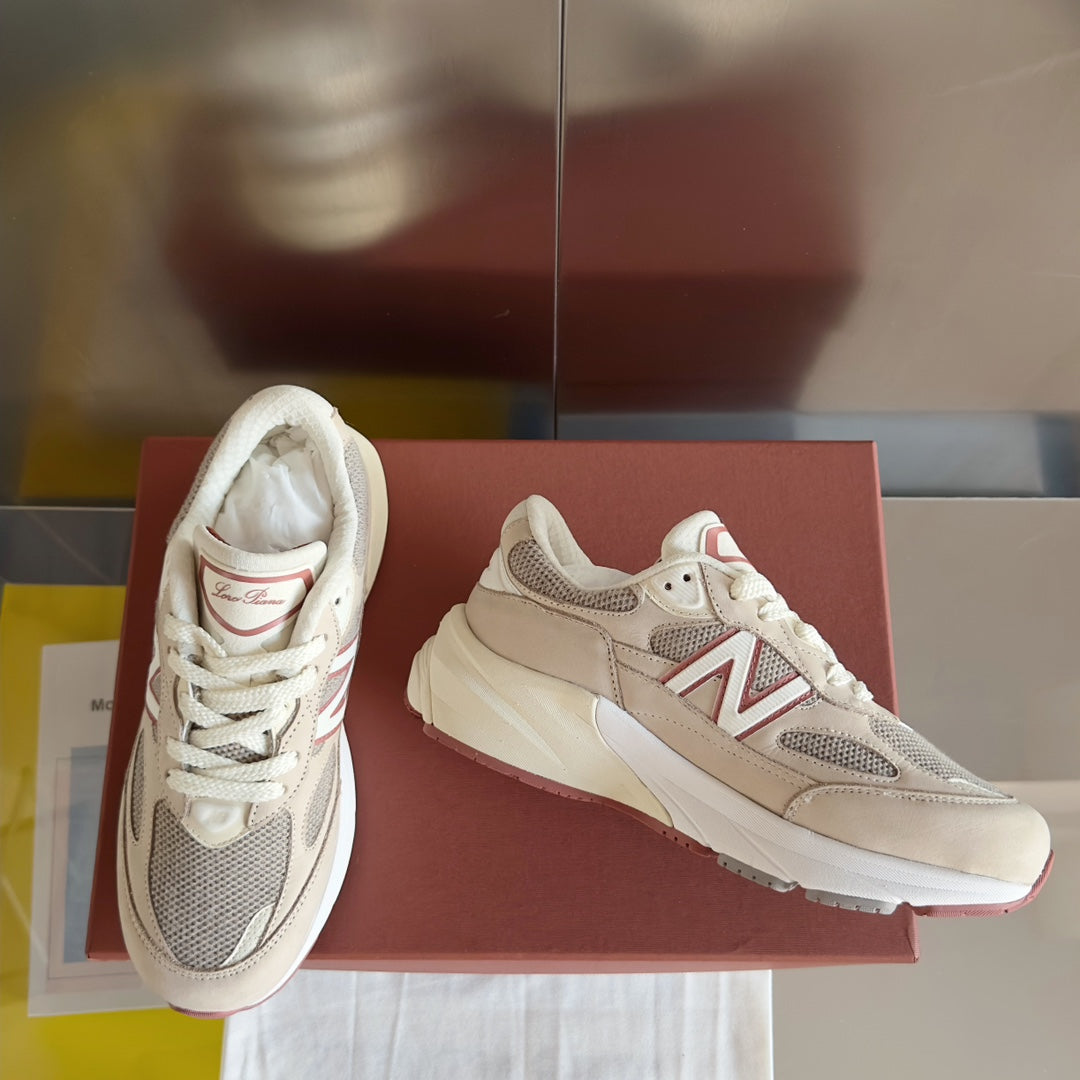 LP x NB 990v6 Sneaker 45mm white grey dark pink calfskin and mesh fabric