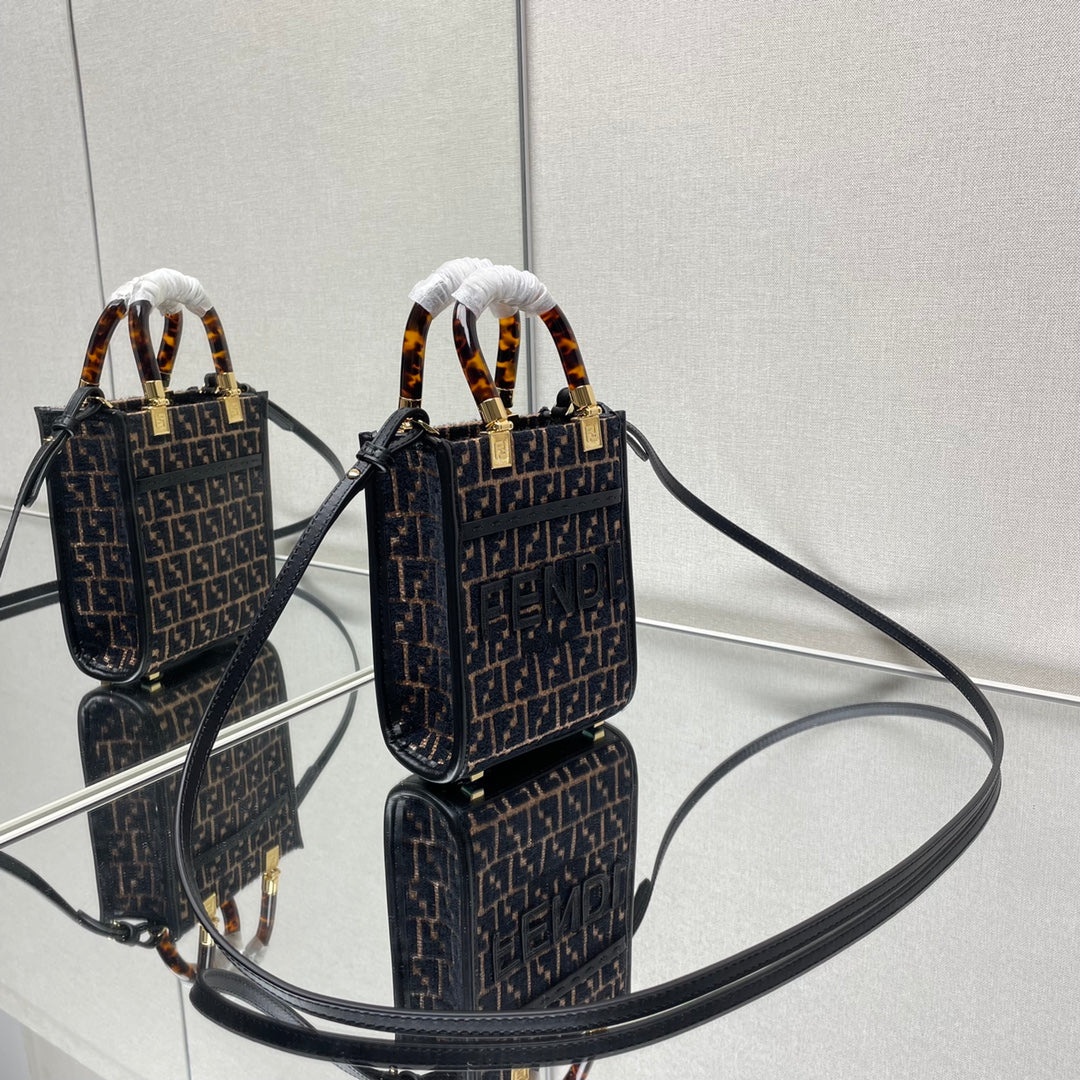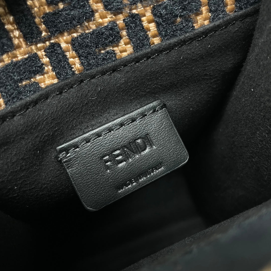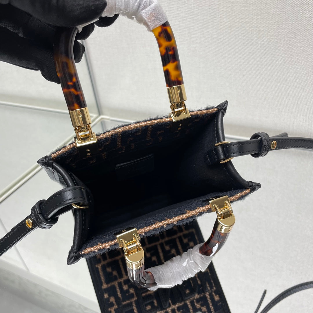 MINI SUNSHINE 18 IN BROWN RAFFIA AND BLACK WOOL CALFSKIN TRIM