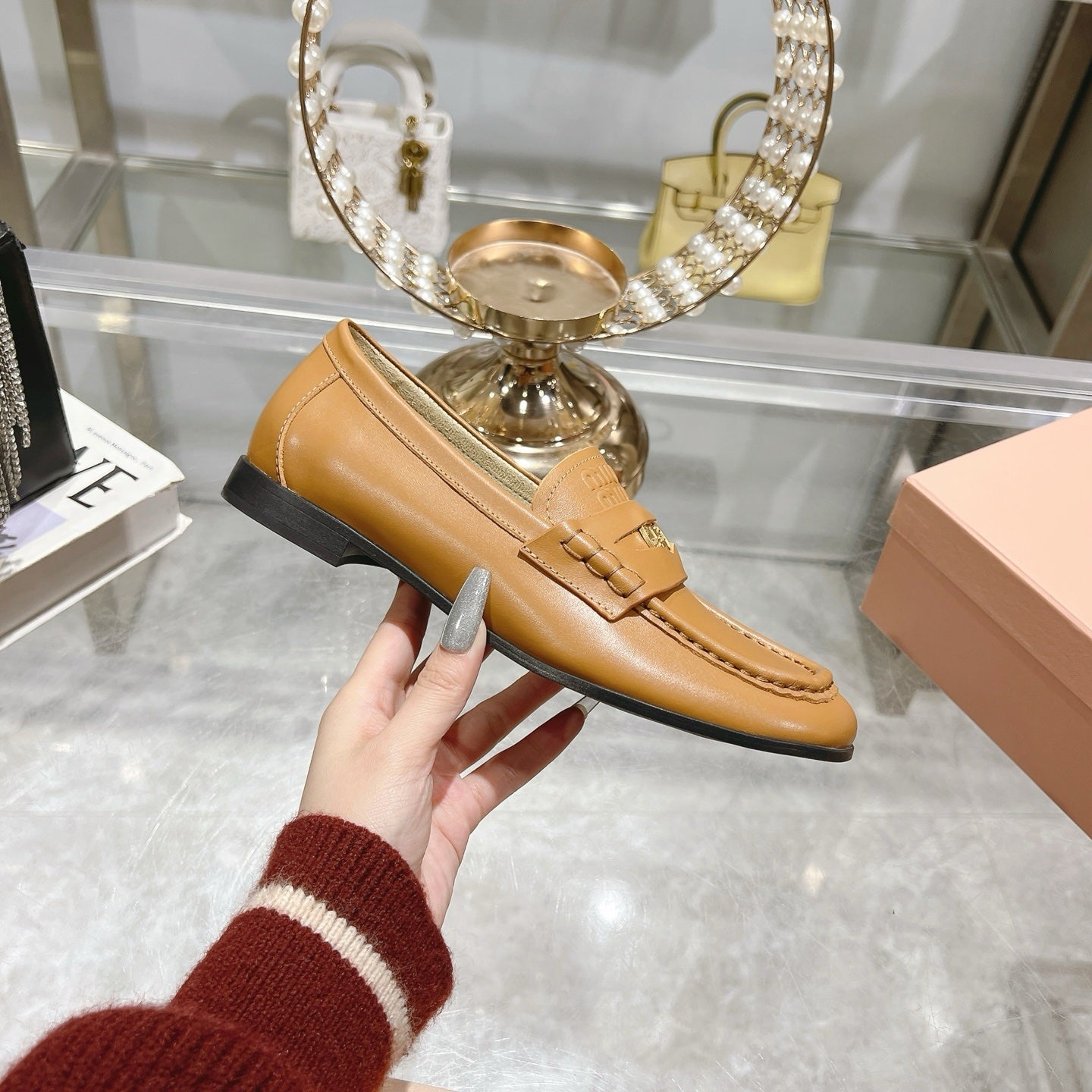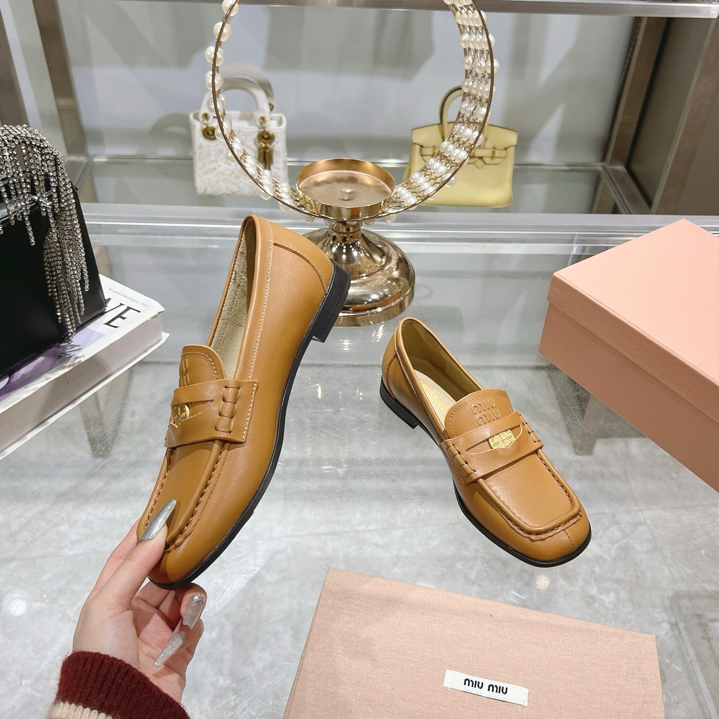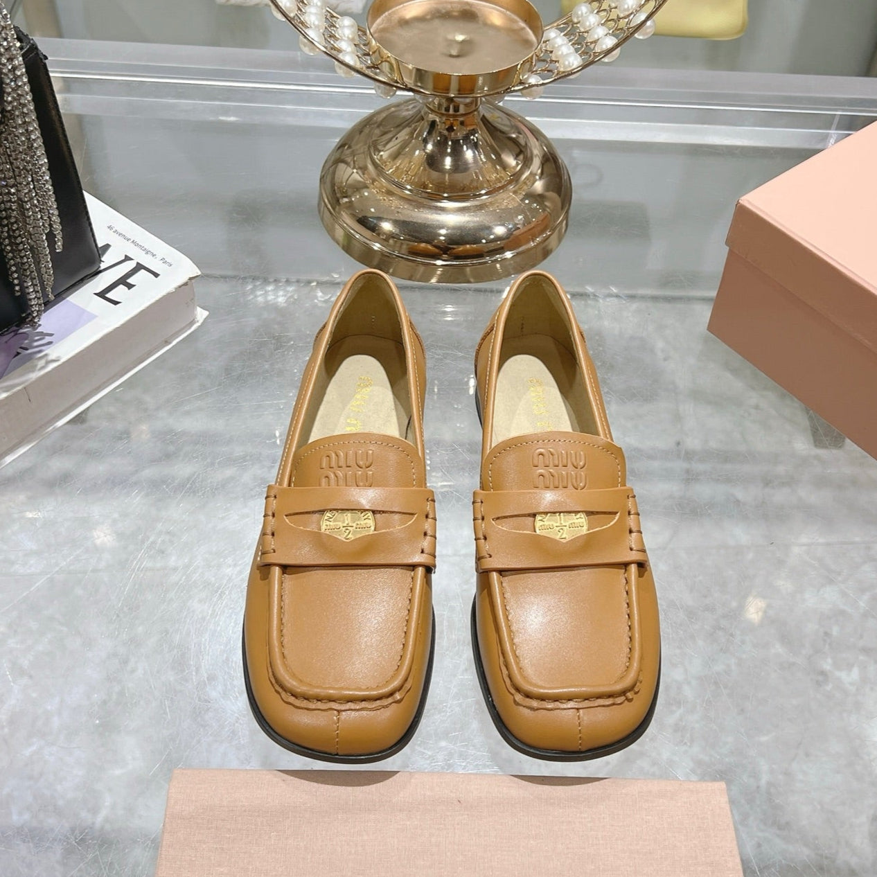 Miu 25C Loafers Caramel Cowhide 235303