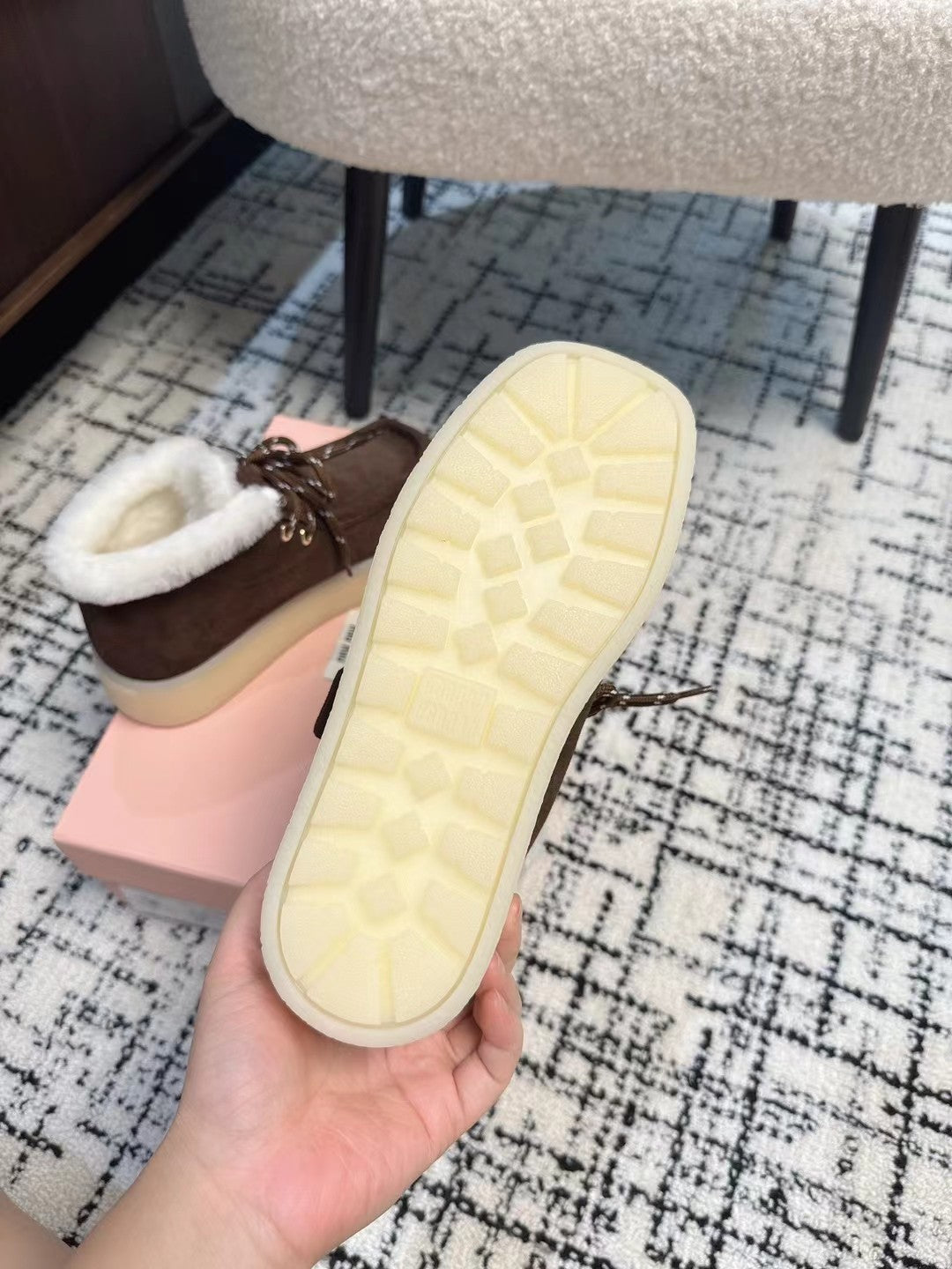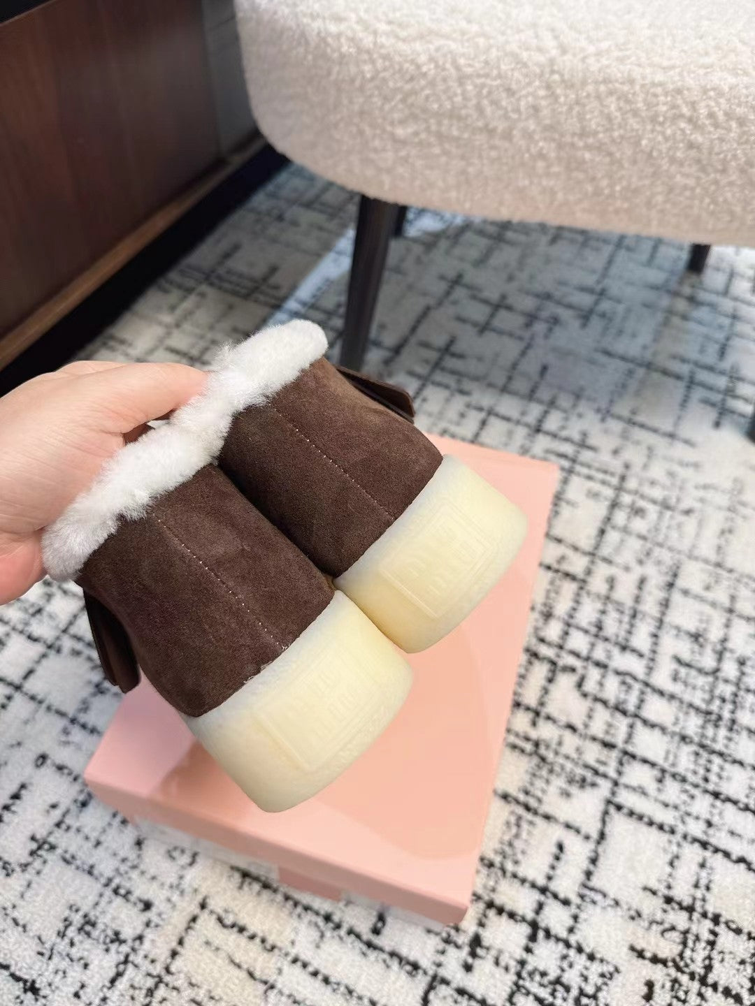 Miu Ankle Boots Chocolate Brown Fleece Lining Cow Suede