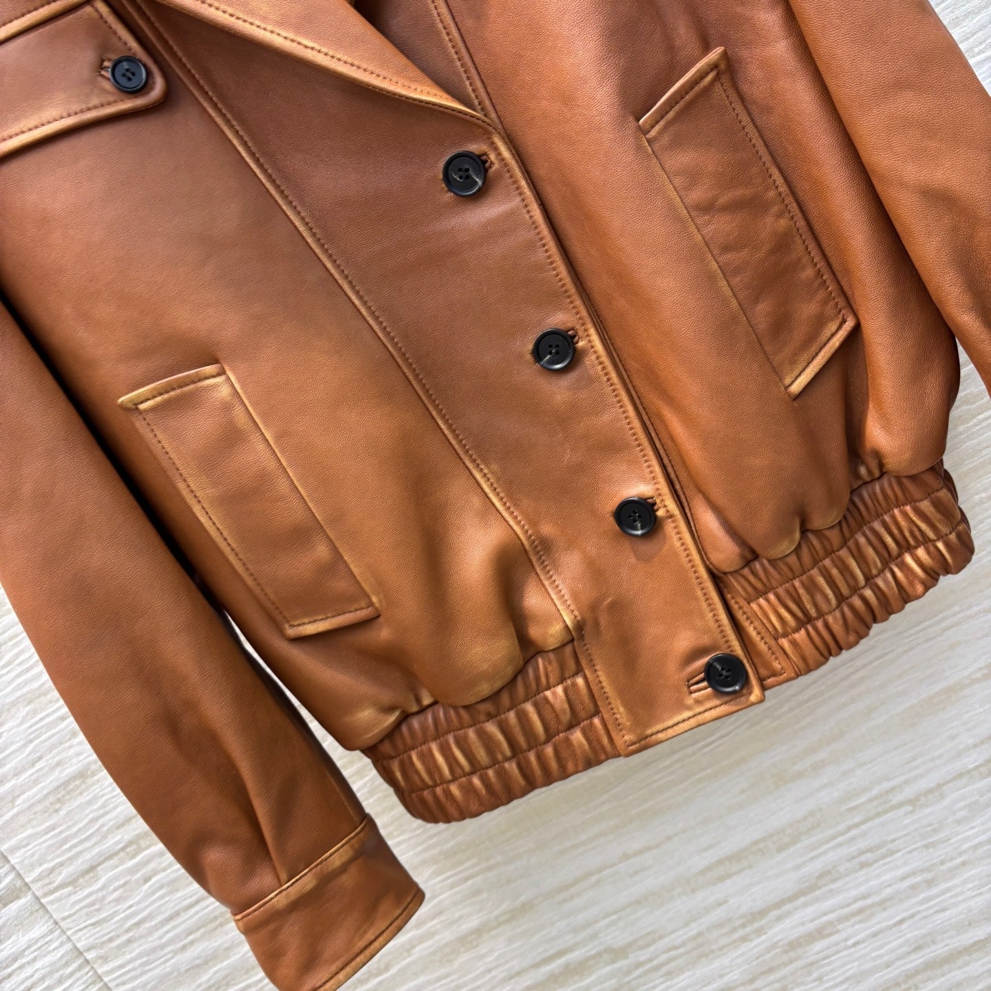Miu Miu 25 Leather Jacket Brown Lambskin