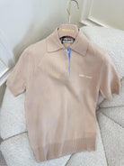 Miu Miu 25 Striped Polo Short-sleeved Sweatshirt Beige Cashmere