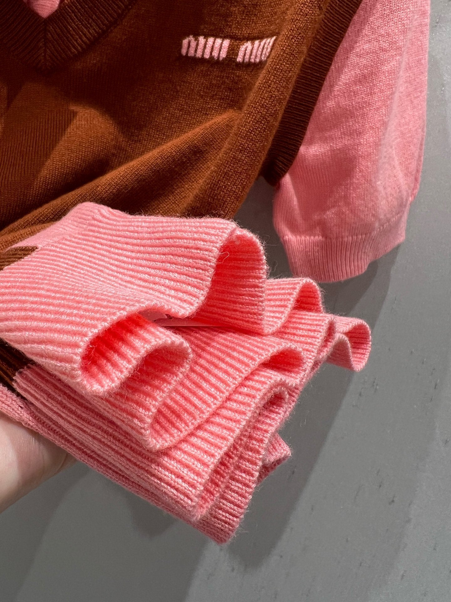 Miu Miu 25 Two-piece Vest Polo short-sleeved Knitted Top Pink Brown Wool 210563