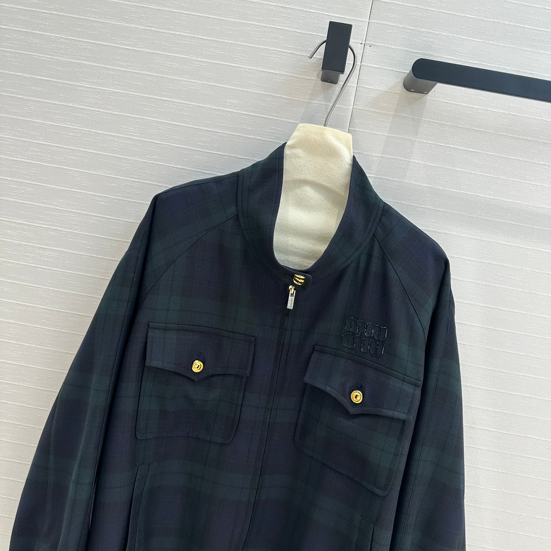 Miu Miu Plaid Drop Shoulder Jacket Green Blue Wool