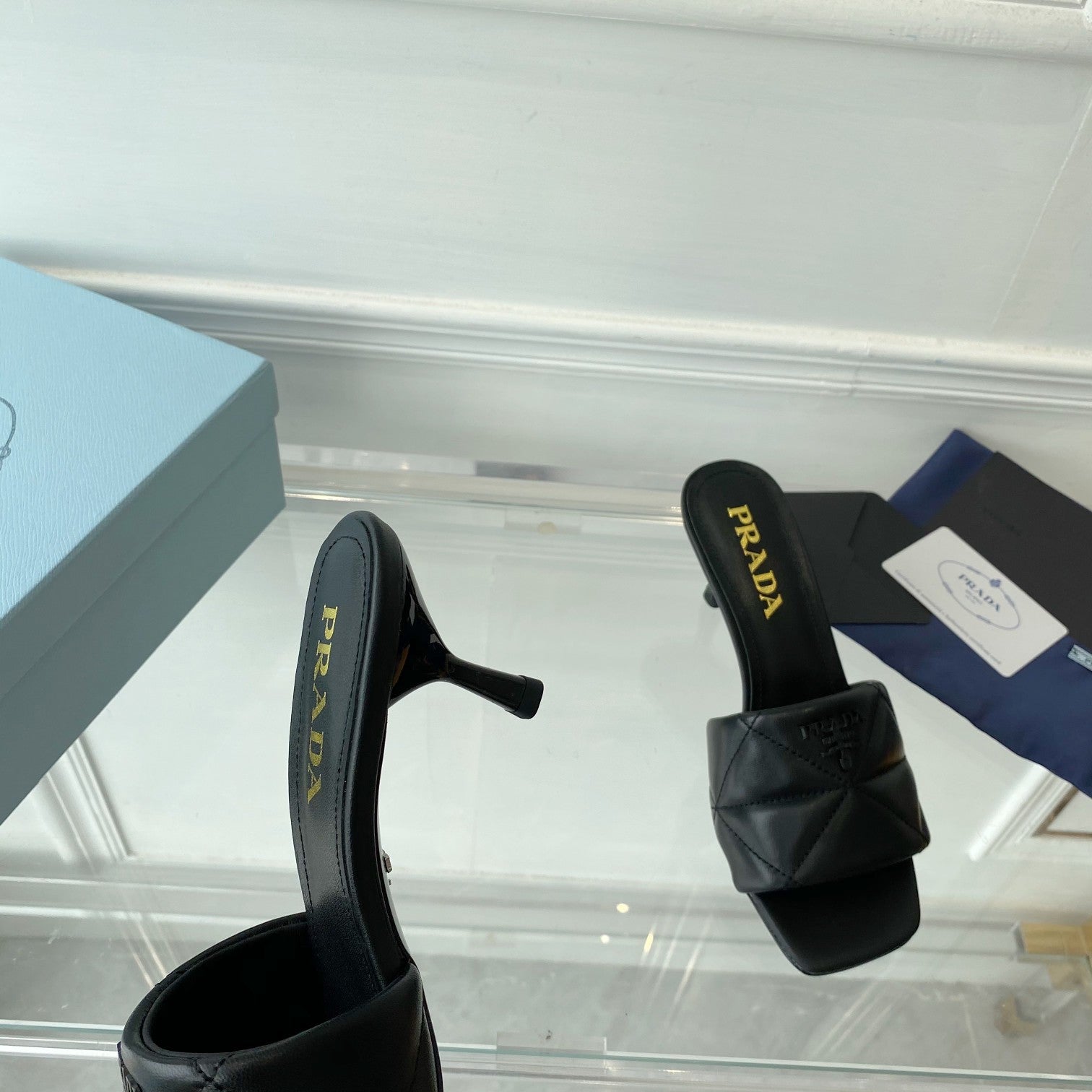 Pra Heeled Sandal 65 Pointed Sole Quilted Black Leather