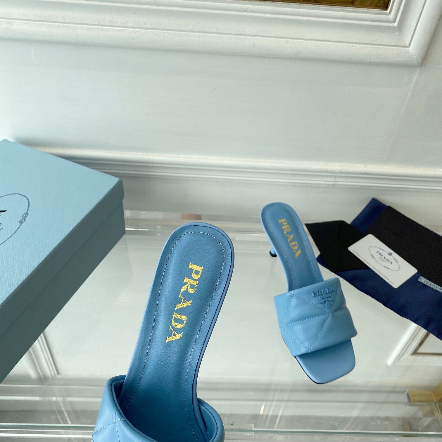 Pra Heeled Sandal 65 Pointed Sole Quilted Sky Blue Leather