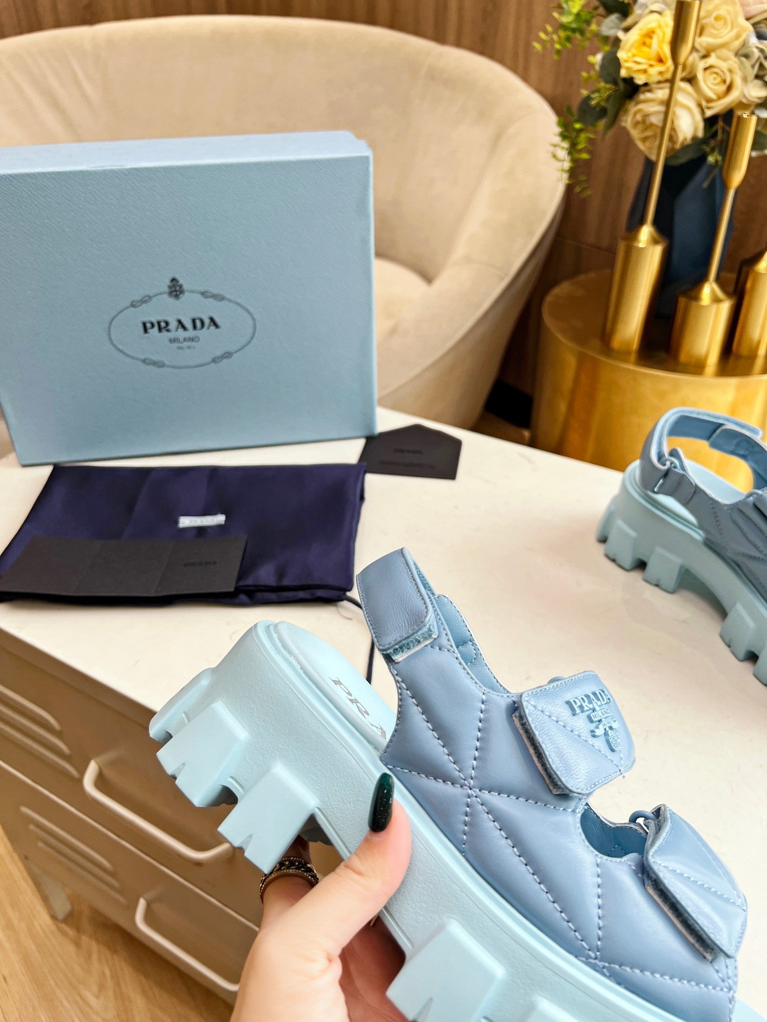 PRA MONOLITH NAPPA SANDALS SKY LAMBSKIN