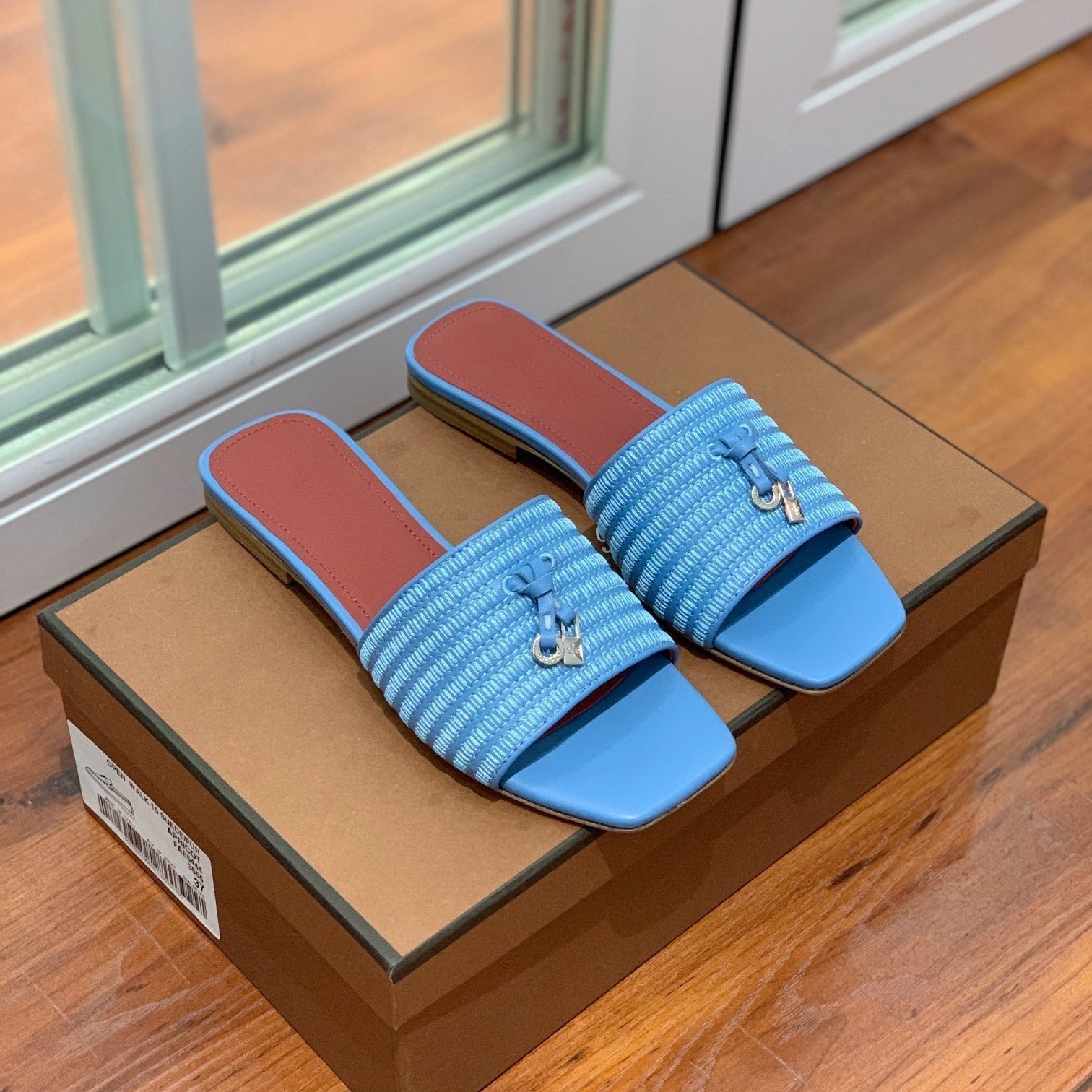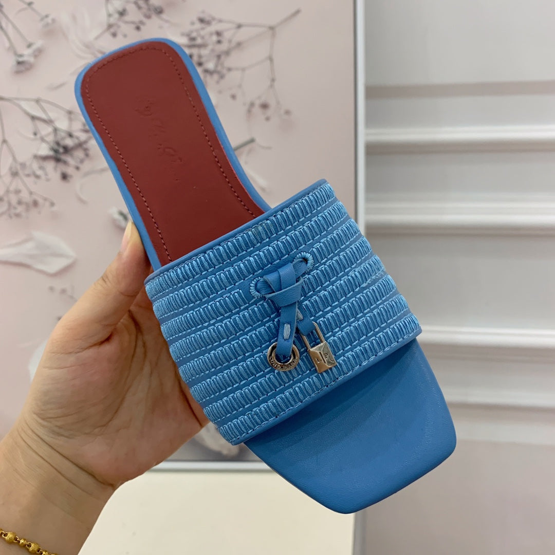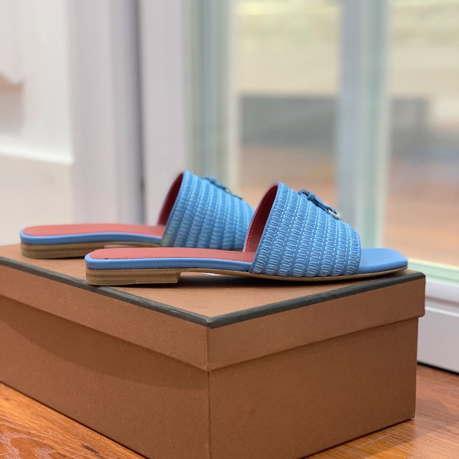 Quare Toe Sprightly Charms Mule Cloud Blue Marron Calfskin
