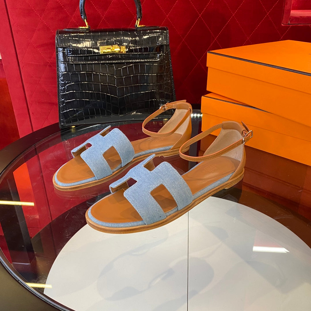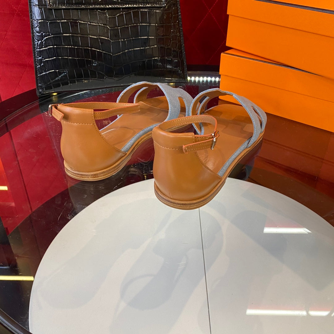 santorini sandal blue denim brown calfskin