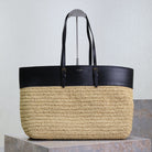 SHOPPING TOTE BAG 38 IN BEIGE WOVEN RAFFIA AND BLACK CALFSKIN