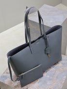 SHOPPING TOTE BAG 38 IN GRAY CALFSKIN