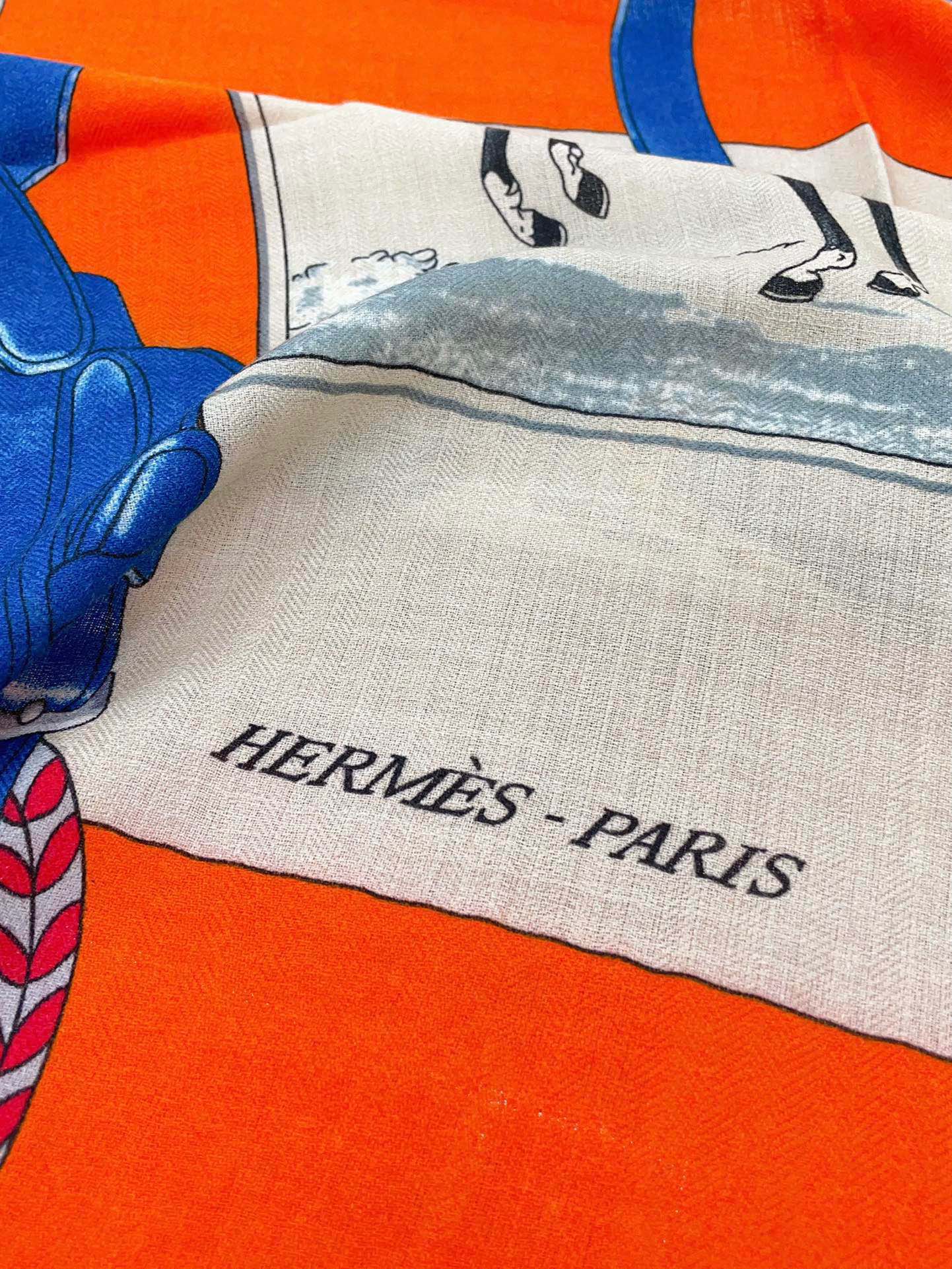 Silk Carrick a Pompe Scarf 140 CM In Orange Colorful Cashmere And Silk 381157