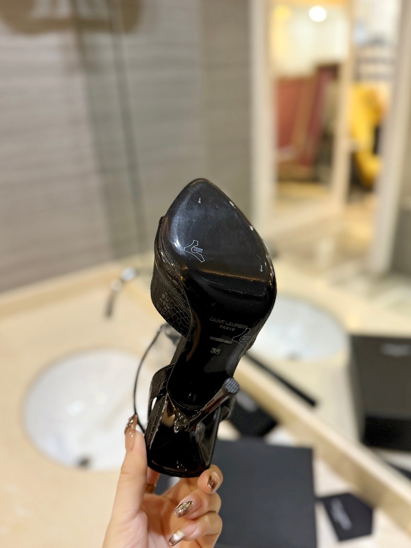 SL AYERS SNAKE CRYSTAL SANDAL BLACK CALFSKIN
