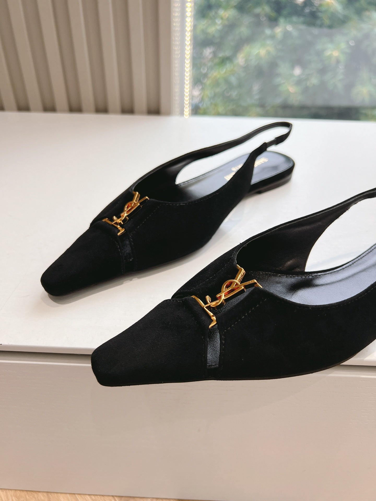 SL BABYLONE SLINGBACK FLAT BLACK SATIN