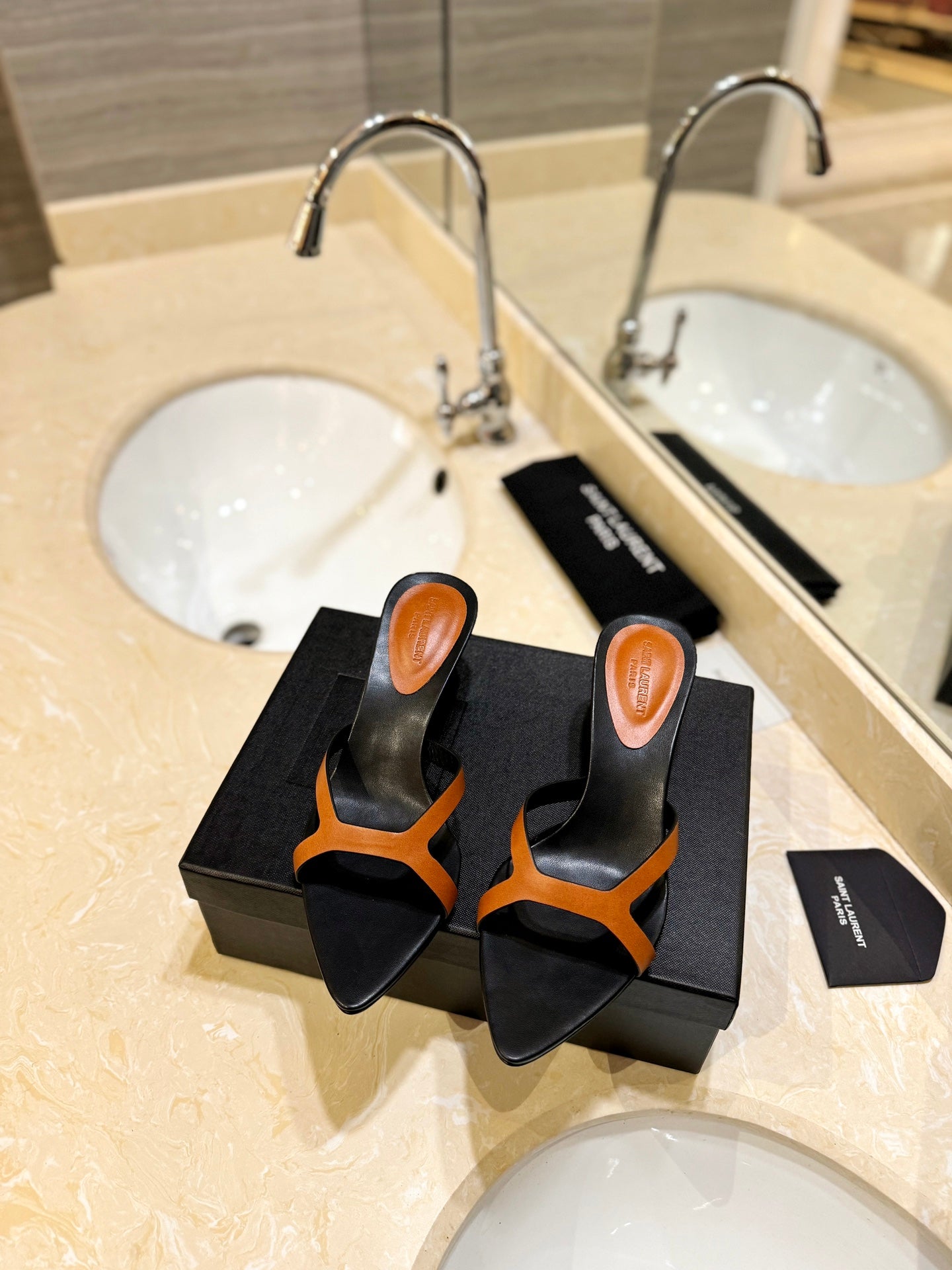 SL OPEN-TOES HIGH HEELS SLIPPER COPPER CALFSKIN