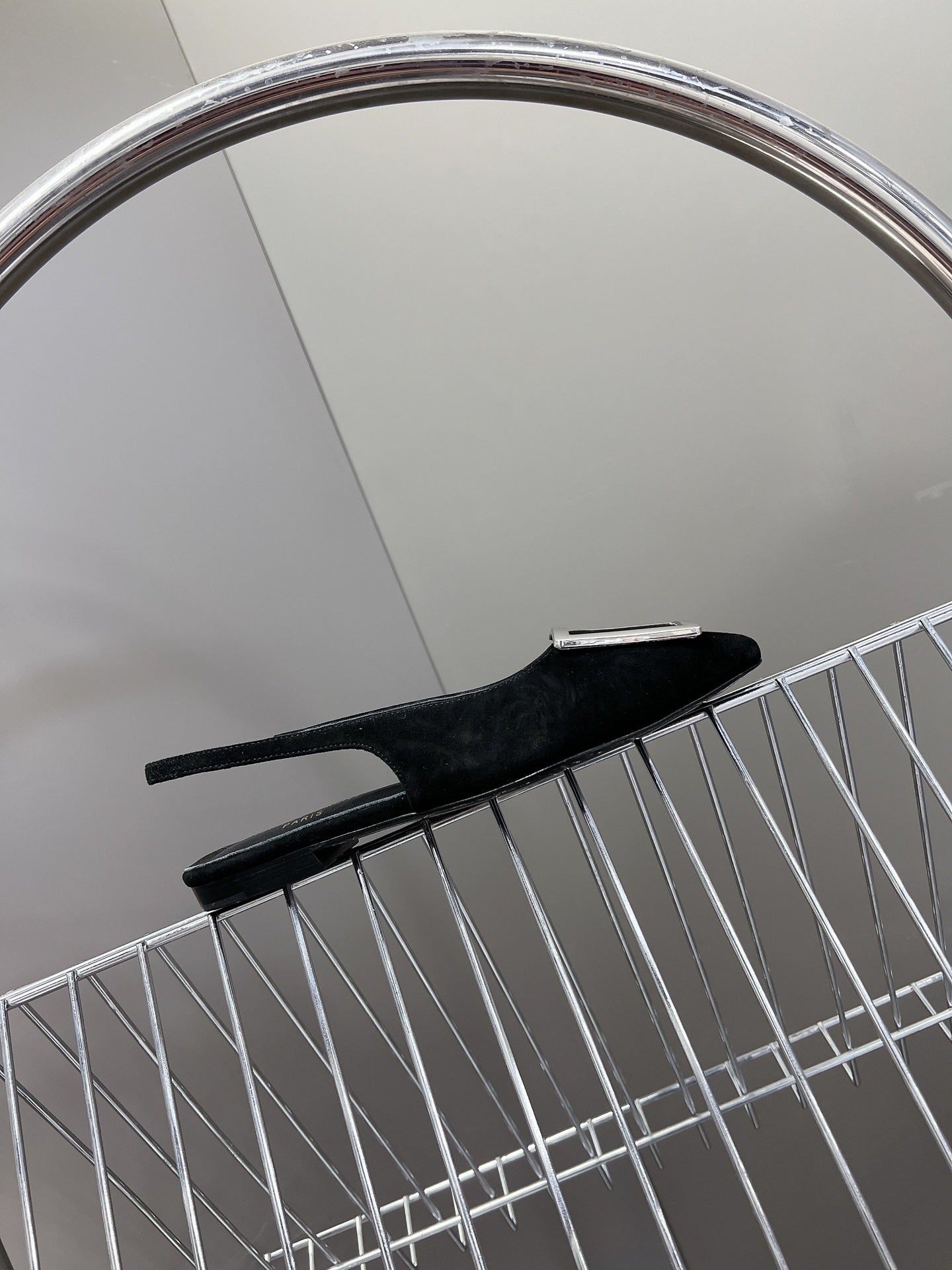 SL SQUARE BUCKLE SLINGBACK BLACK SUEDE