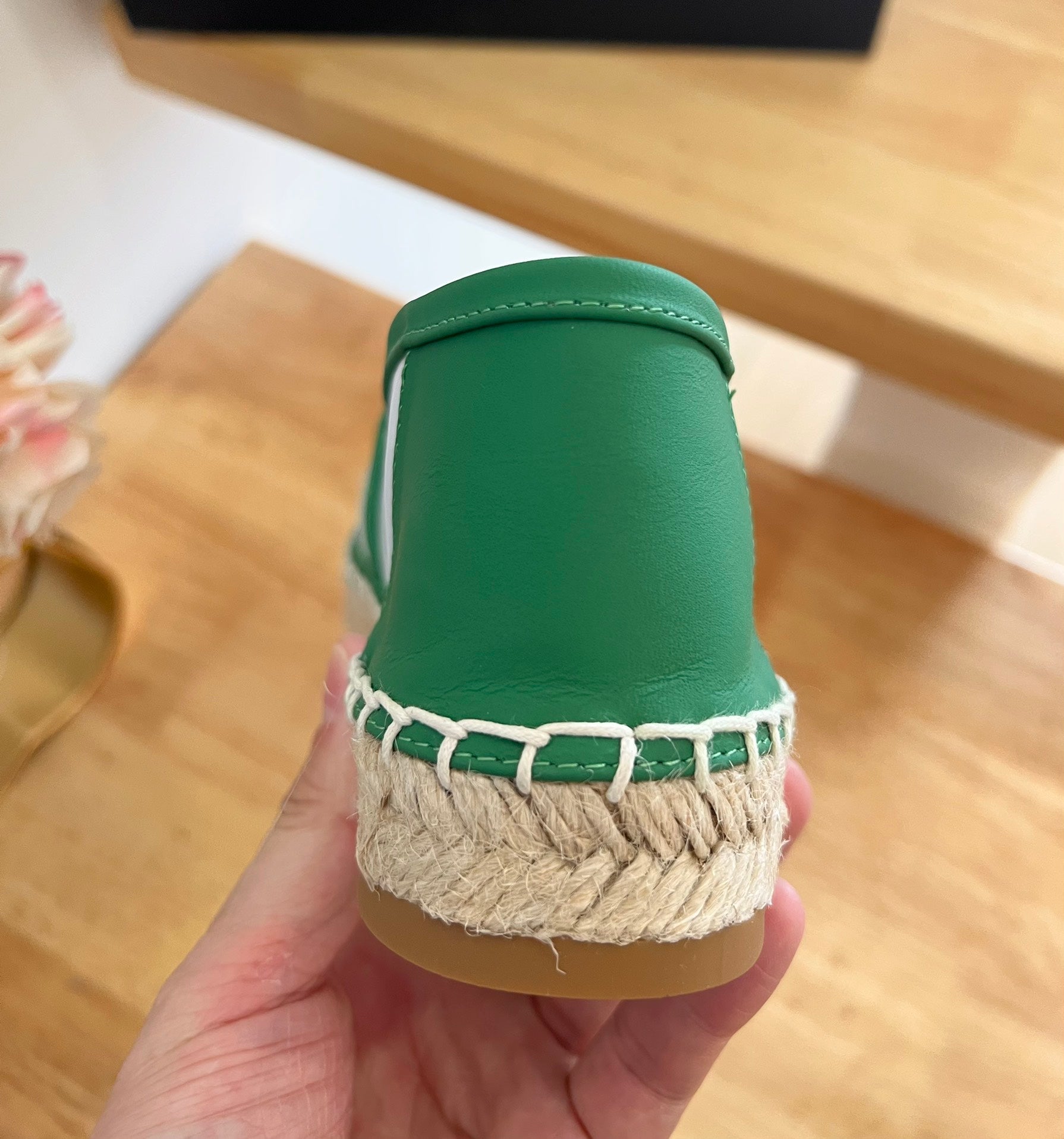 SL YVES LOGO SLIP ON DARK GREEN CALFSKIN AND MESH