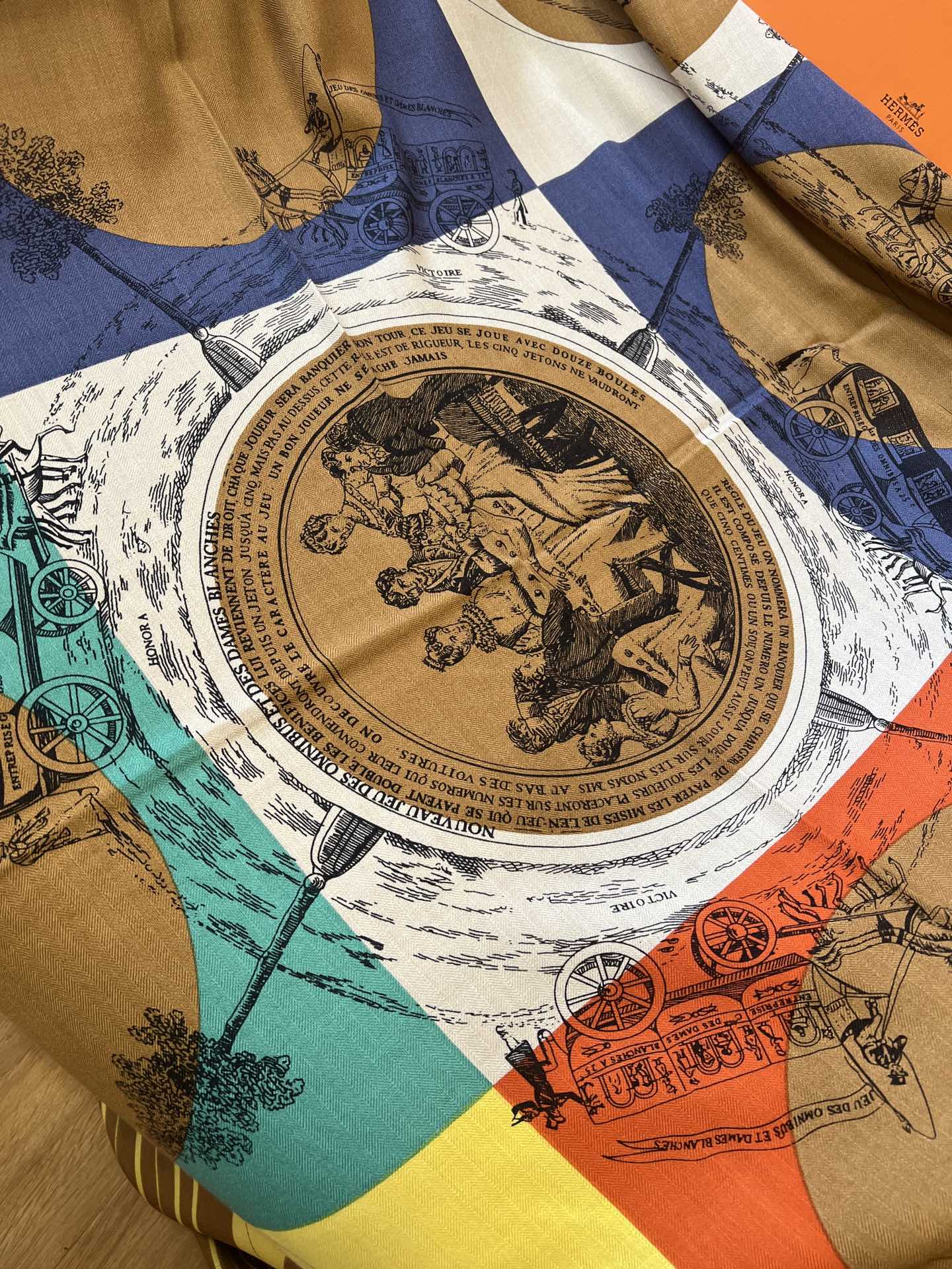 Square Scarf 140 CM In Brown Colorful Cashmere And Silk 327523