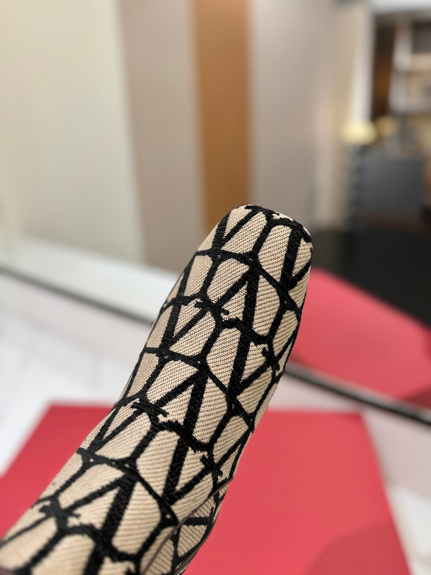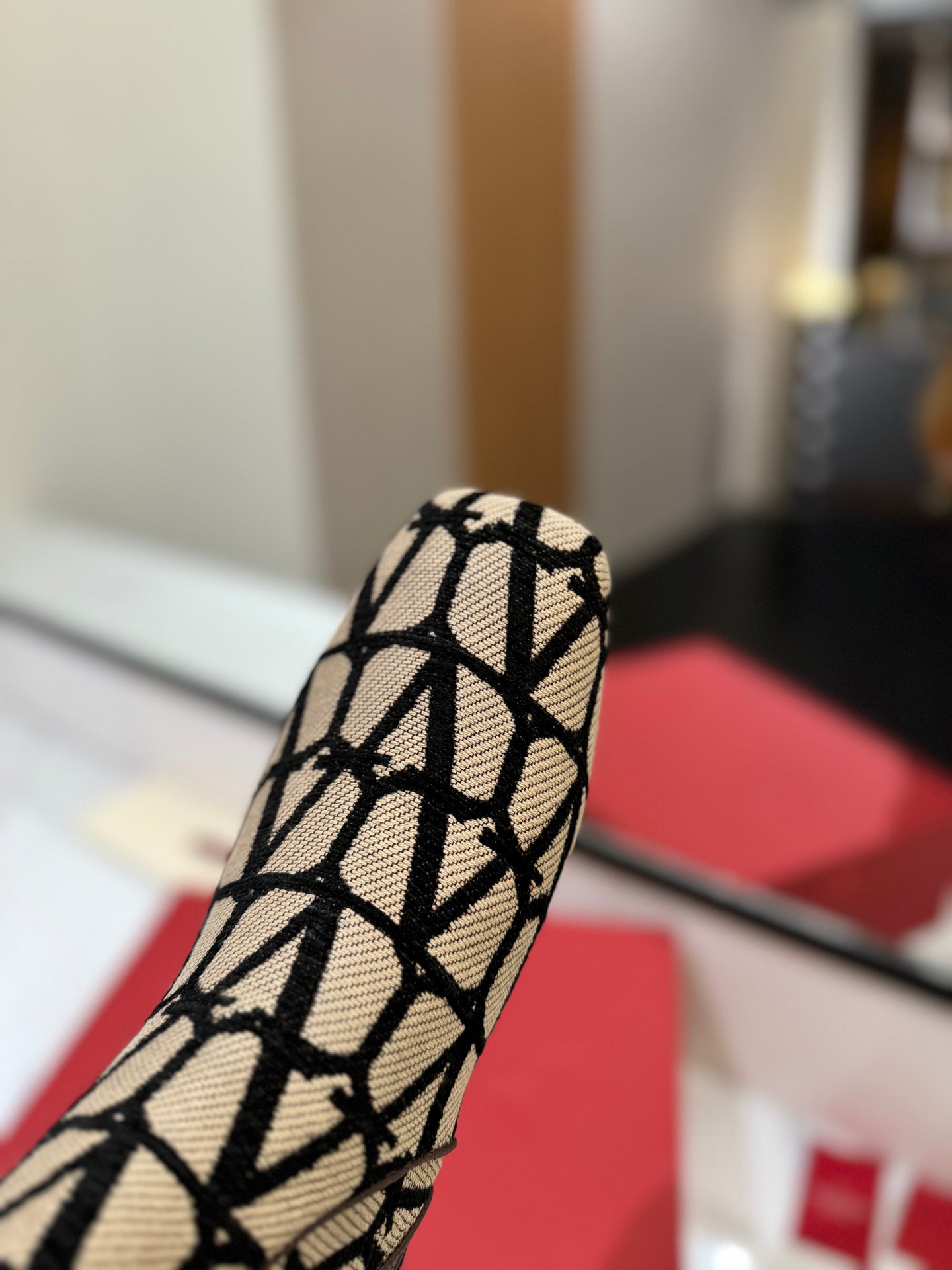 Valentino Garavani VLogo Tall Monogram Ankle Boots 30mm In Beige Mix Black Canvas Fabric 992806