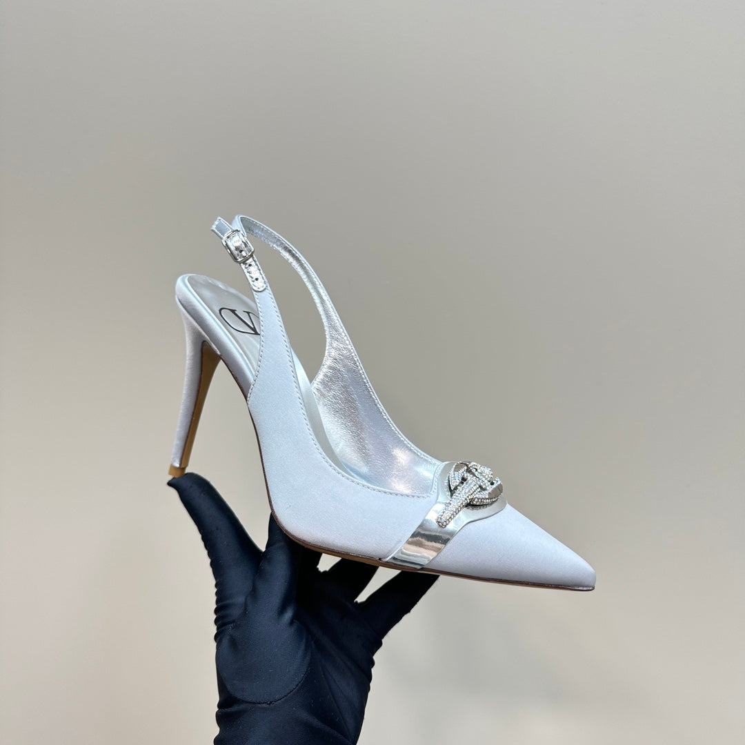 Valentino Slingback Pump 100mm In White Mix Sliver Lambskin 999027
