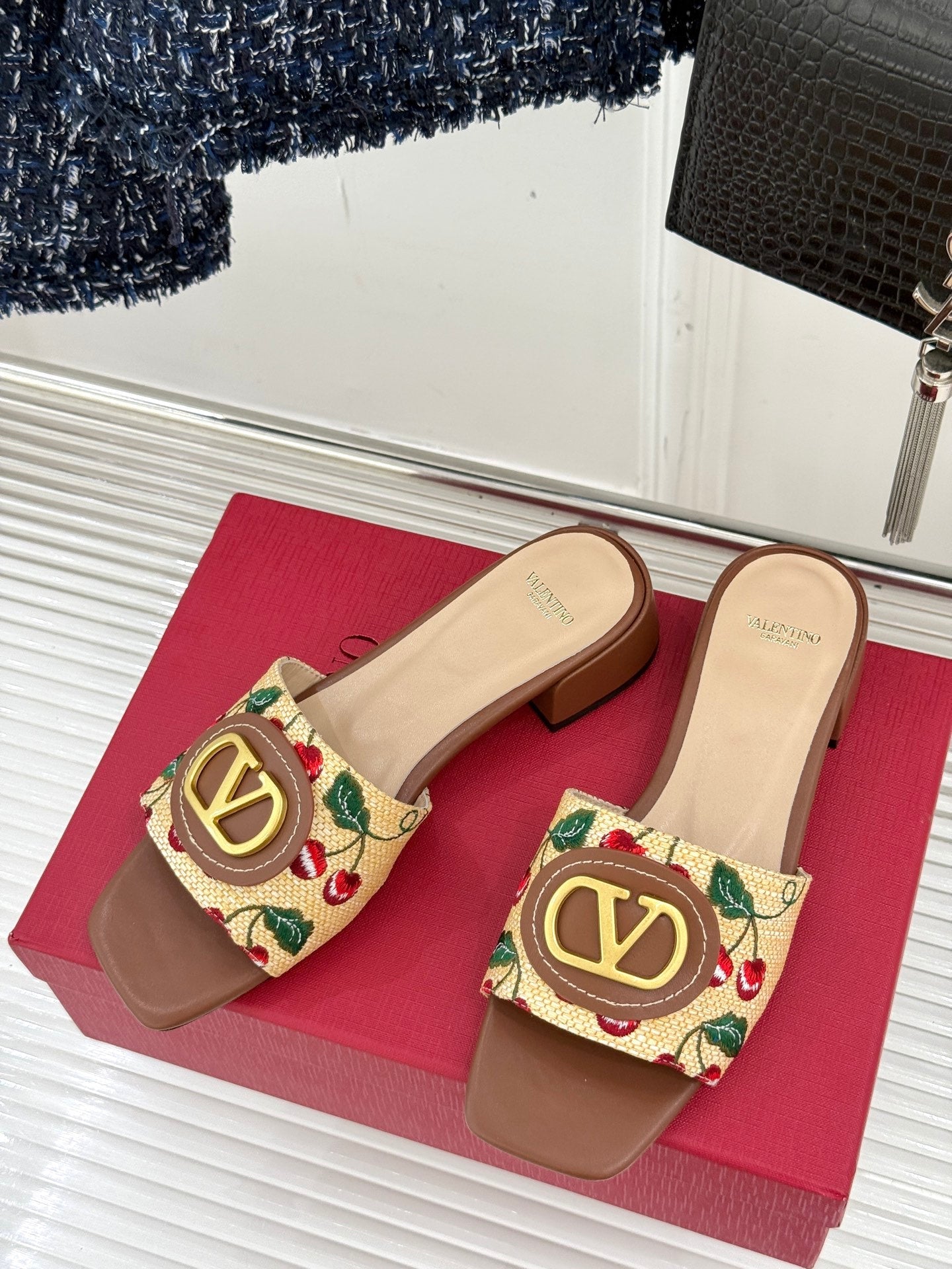 VT 25 Cherryfic Leather Trimmed Slides Brown Sheepskin 286505