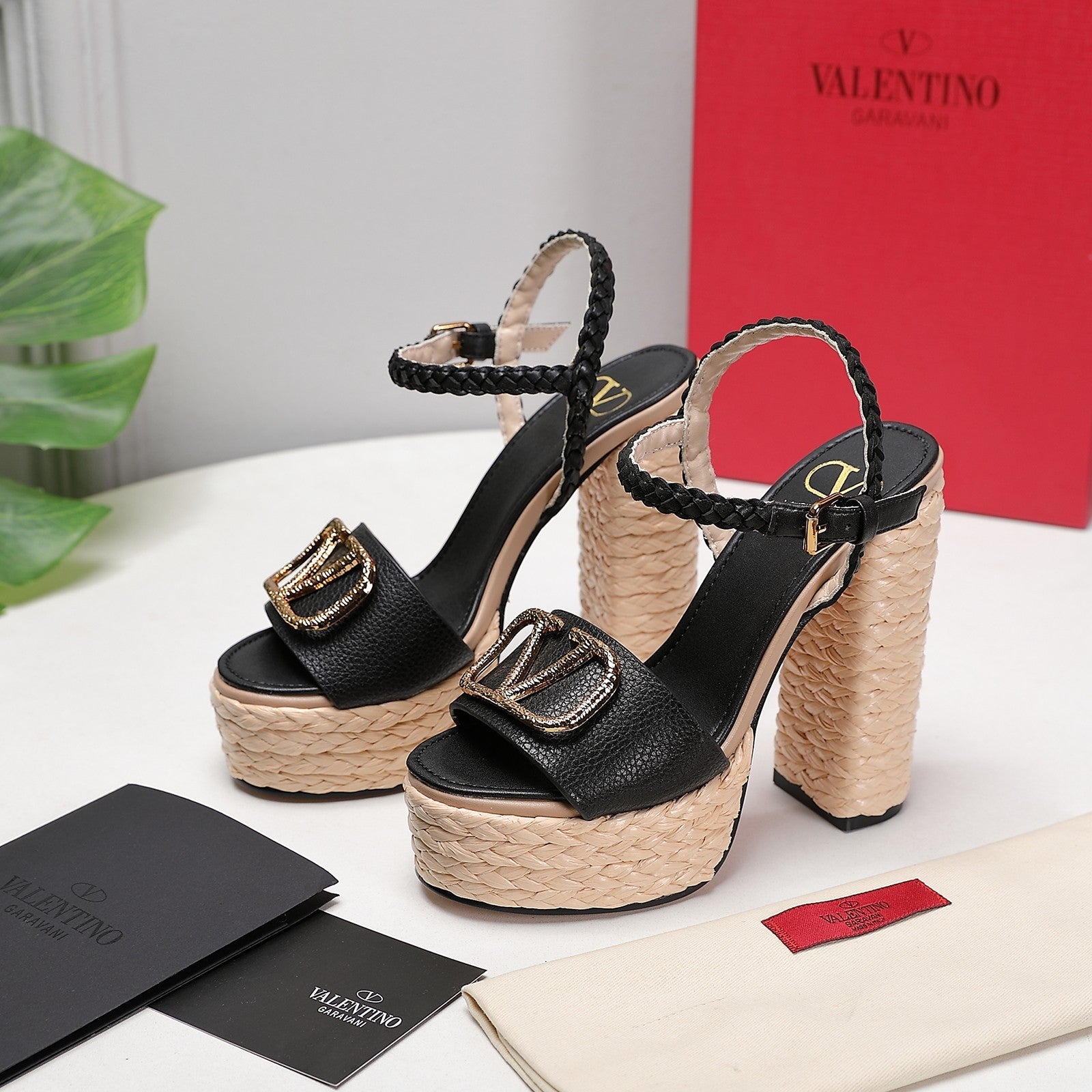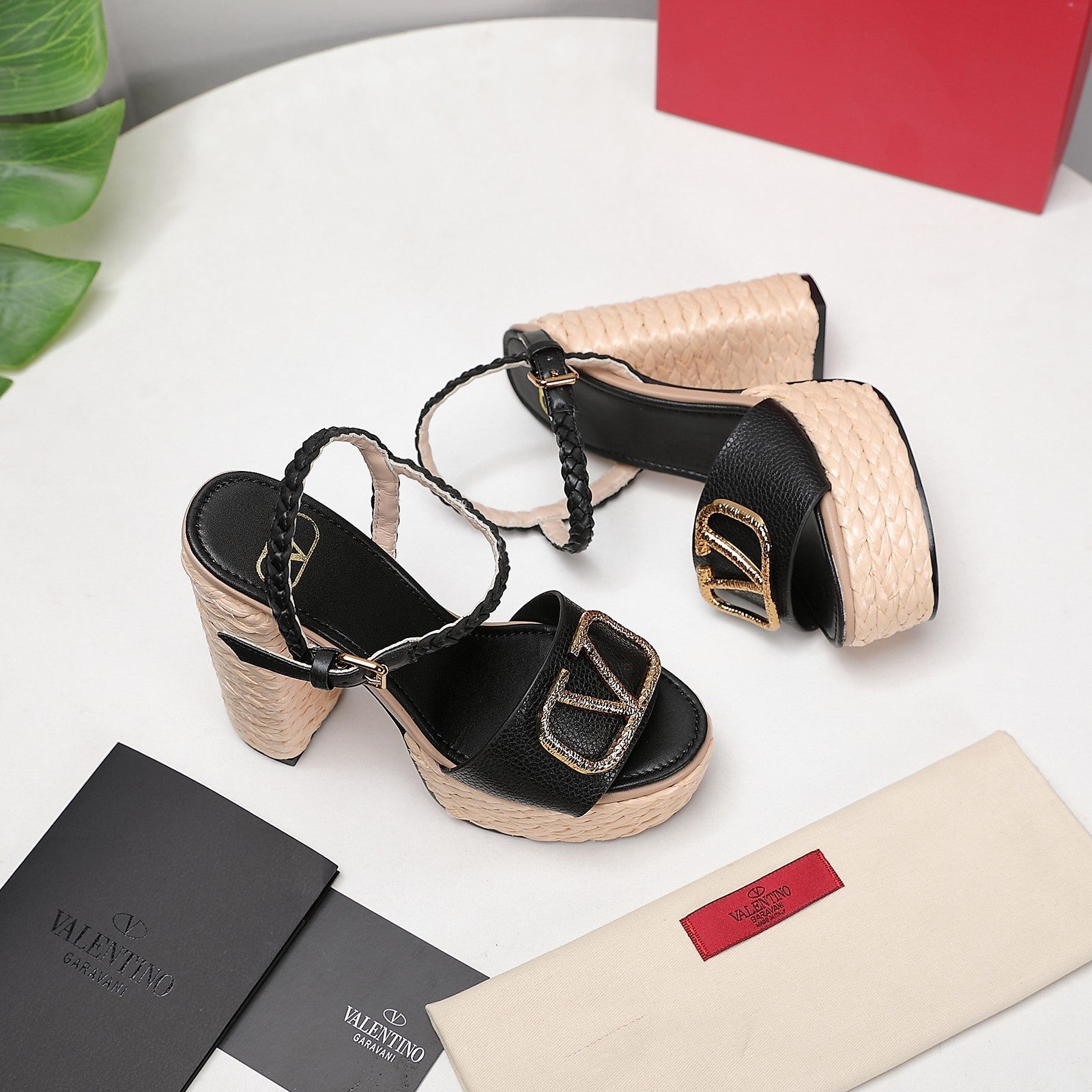 VT 25 Platform Sandals Black Cowhide Espadrilles 363020