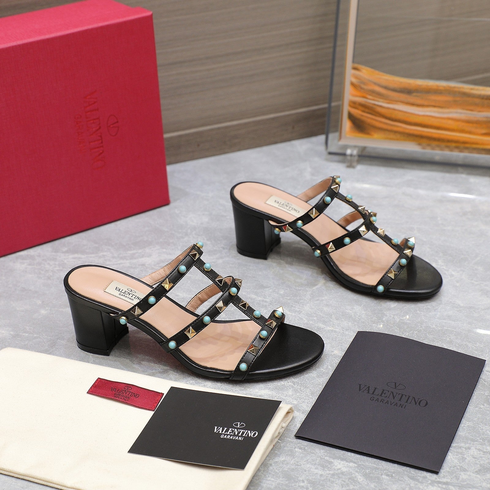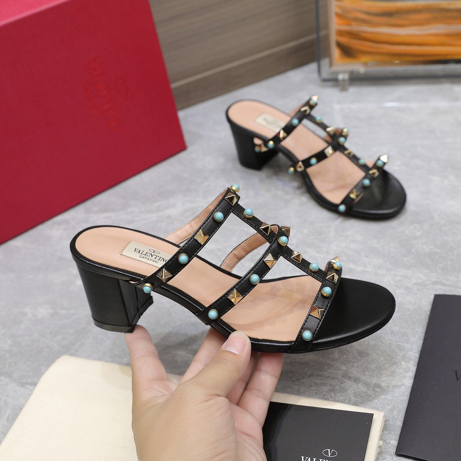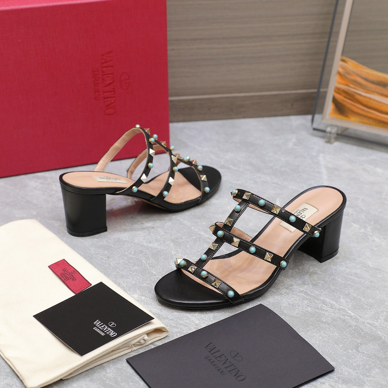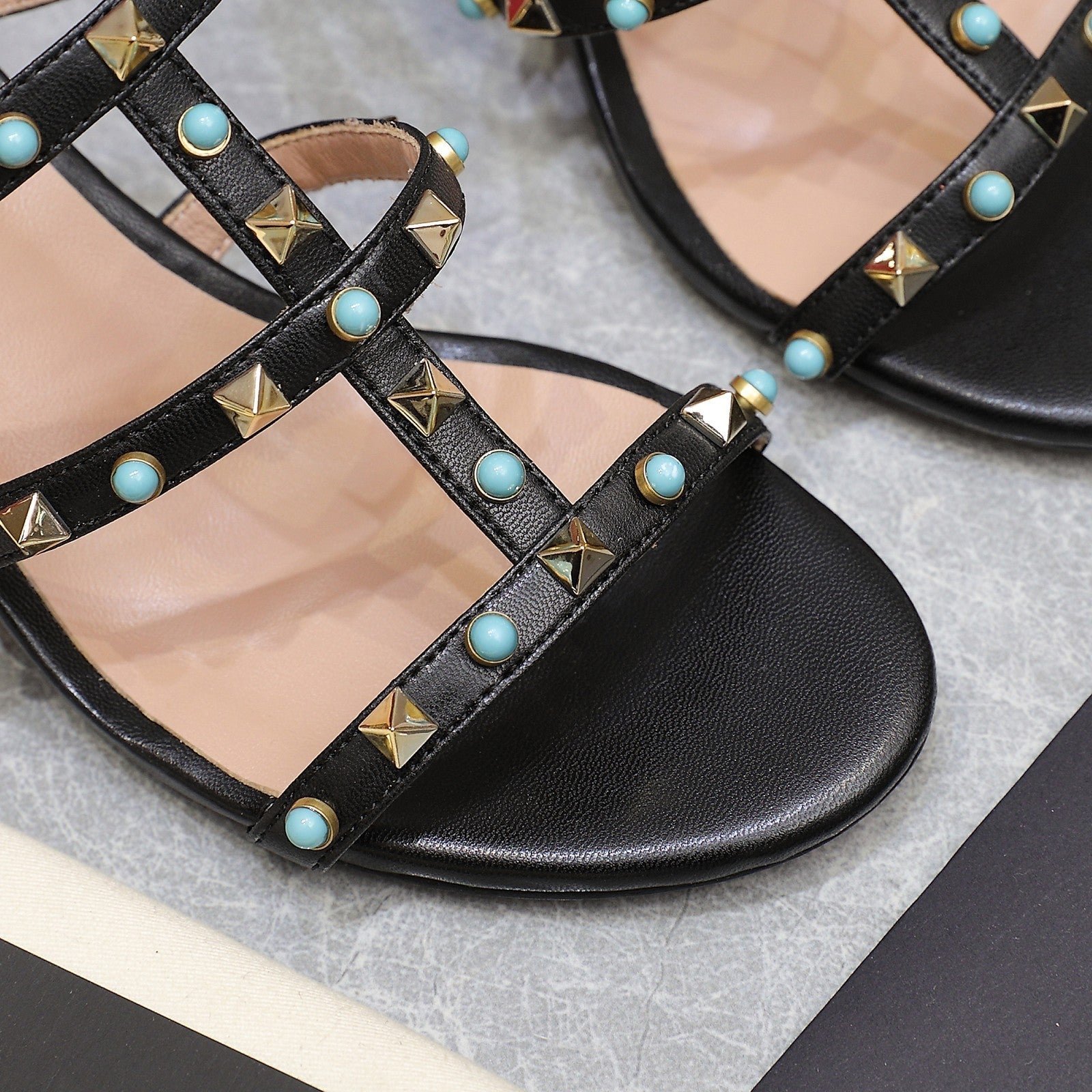 VT 25 Rockstud Heeled Sandals Black Sheepskin 289667