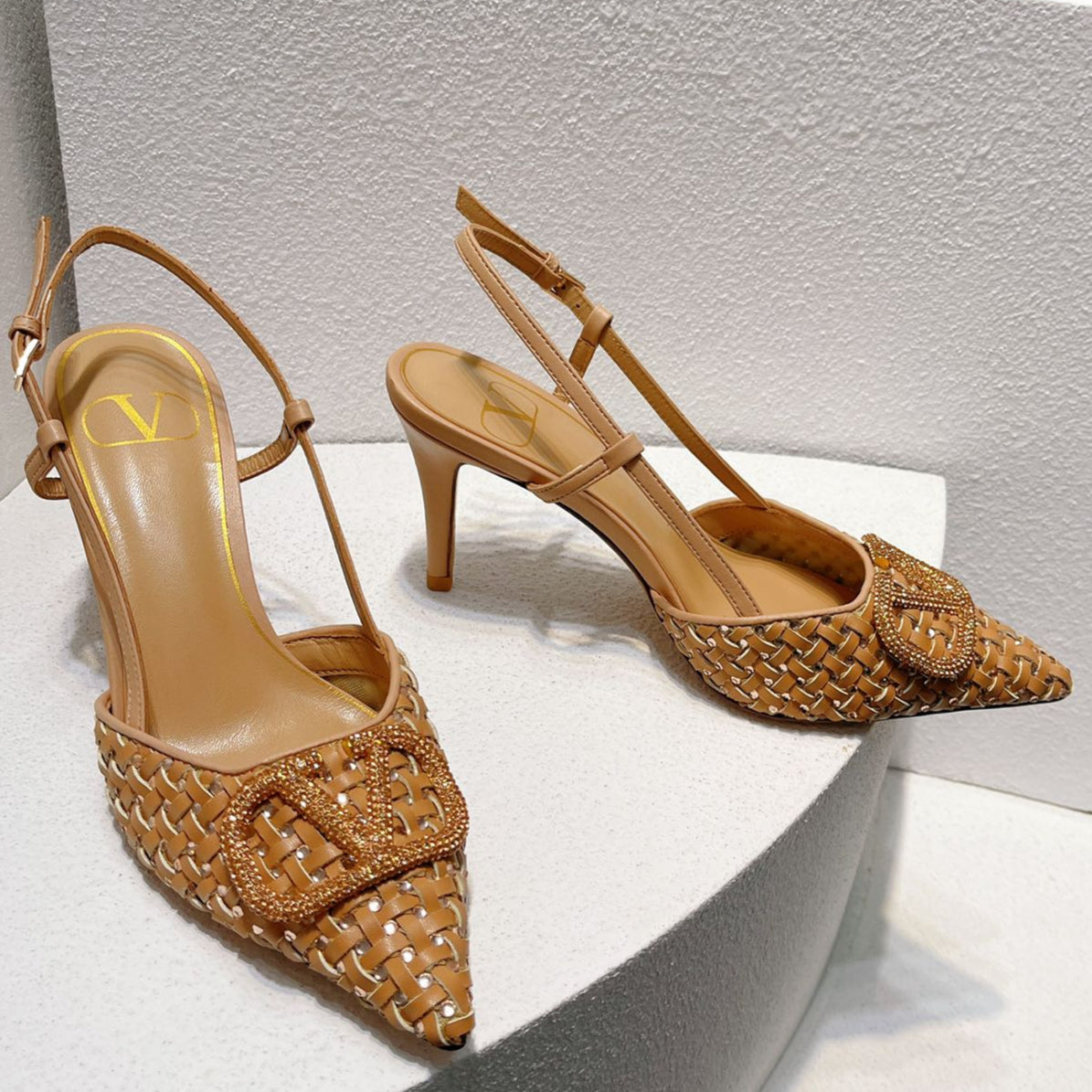 VT High Heeled Slingbacks Peru Brown Sheepskin 292801