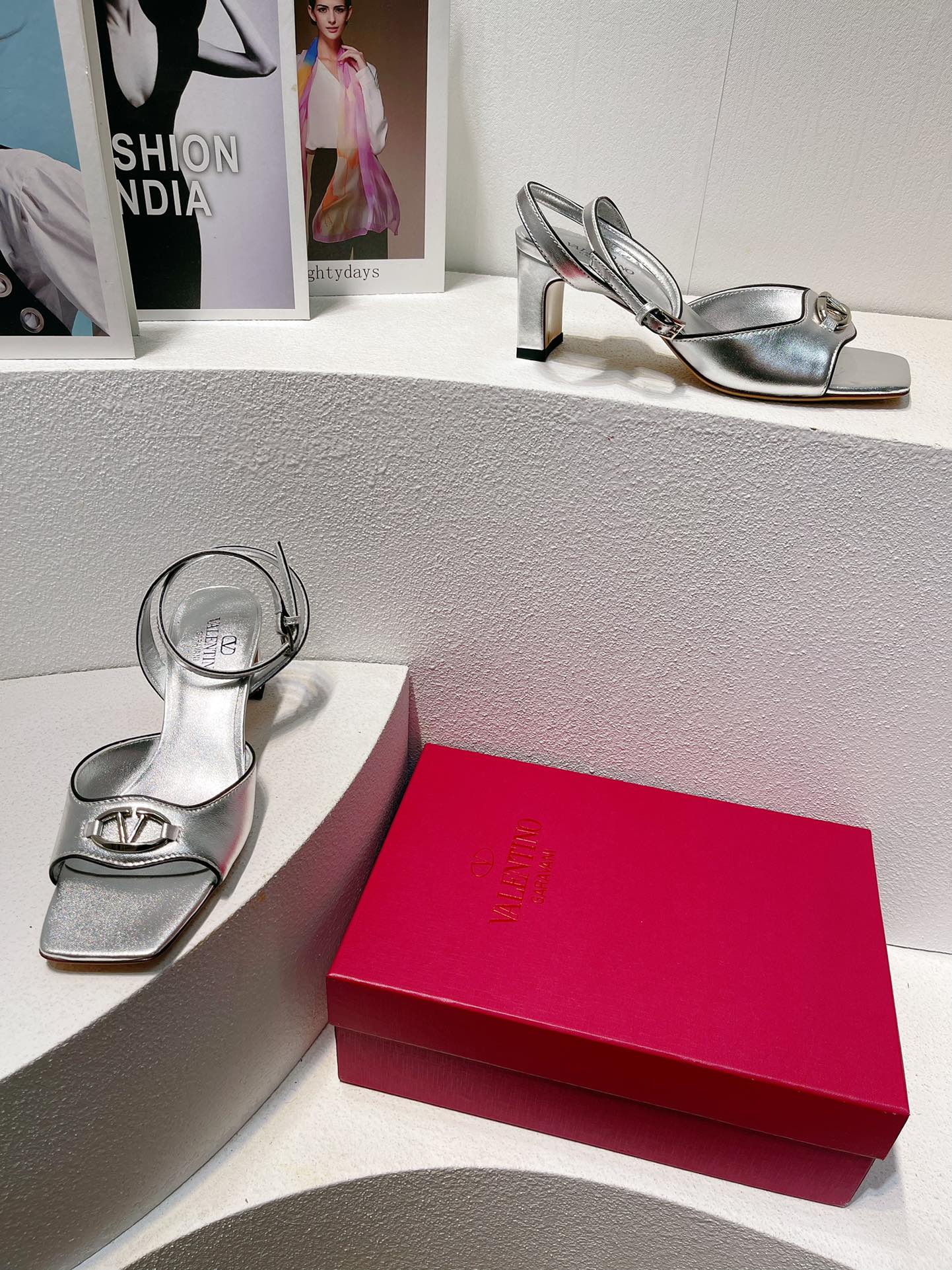 VT Sandals Heels 50mm Silver Cowhide 292775